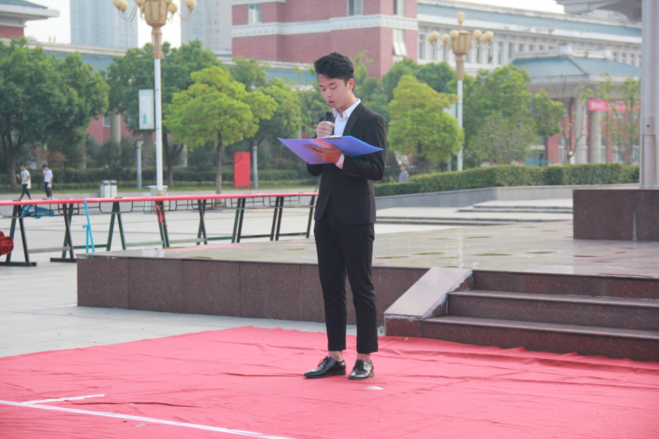 学生代表在升旗仪式上讲话表示纪念抗日战争的伟大胜利,不是为了延续仇恨,而是为了从那段悲壮的历史中汲取伟大的精神力量,以此来促进中华民族的自觉、自省、自强,希望同学们进一步增强国防意识,居安思危,有备无患。