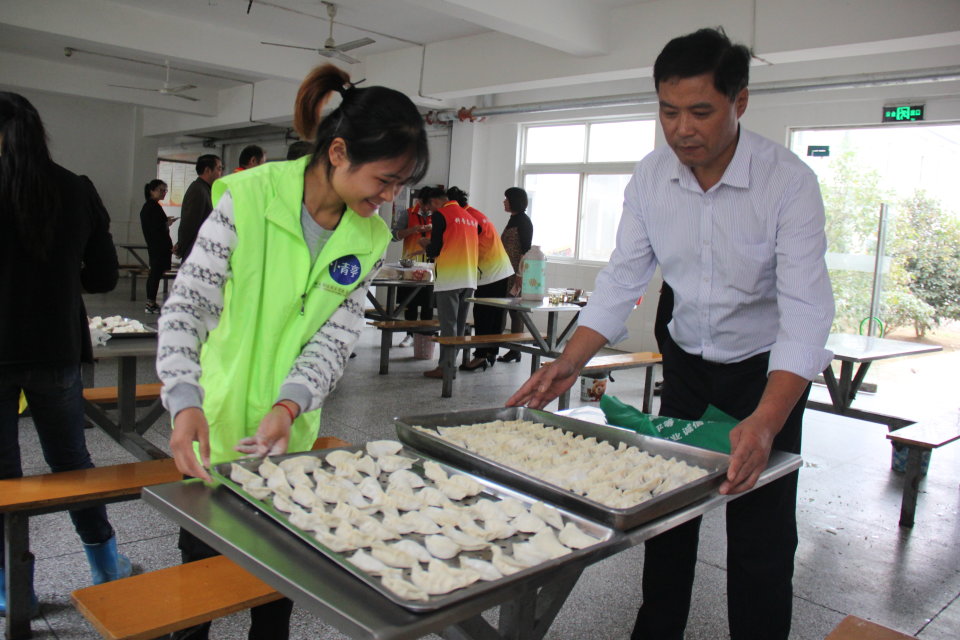 下午志愿者们在校门口集合,清点人数强调注意事项后,前往目的地。志愿者们将包饺子的食材带到敬老院,老人们听到志愿者们的声音,纷纷出来迎接。看到志愿者手里拎着饺子馅、饺子粉,老人们露出欣喜的笑容。来到敬老院后,很快志愿者都忙活了起来,志愿者们两组行动,一组包饺子,分工有序、配合默契,虽然造型个性,但却心意满满;一组陪老人,拉家常,嘘寒问暖,一言一语中透露着对老人们浓浓的关爱。