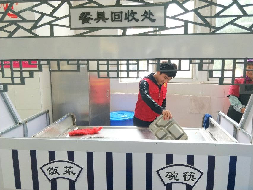 志愿者们先在食堂阿姨那里了解食堂师傅每餐工作内容,并请师傅讲授相关工作技巧。随后根据工作需要分为两组,一组负责分拣筷子,为用餐的同学提供便利。一组负责擦桌子,将饭桌上的饭粒、残渣回收到饭堂,为下一位吃饭的同学提供干净的桌椅。中午是食堂人最多的时候,志愿者们充分发挥了他们的作用,协助工作人员清理餐桌,清理地板上的污水,给就餐的同学们营造一个良好的就餐环境。志愿者们没有嫌弃剩饭剩菜的异味,没有躲避脏活累活,一直持续到食堂内用餐的同学全部离开。活动接近尾声时,食堂阿姨热心的问候志愿者们,并对志愿者们表示感谢。