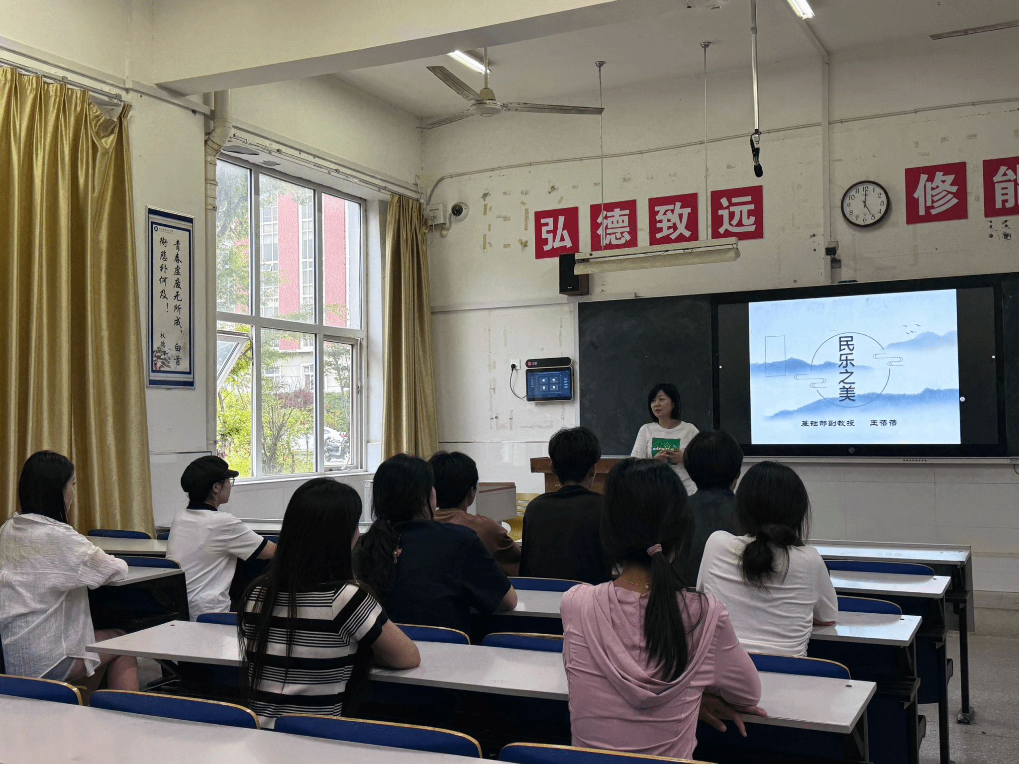 为弘扬中国传统文化,提升青年学子美育素养,丰富校园文化生活,5月31日下午,广播站在4107教室举办了“民乐之美”学术讲座,广播站指导教师、awc官网人文素养教研室副教授王蓓蓓老师主讲,学校合唱团、广播站和部分音乐爱好者聆听讲座。