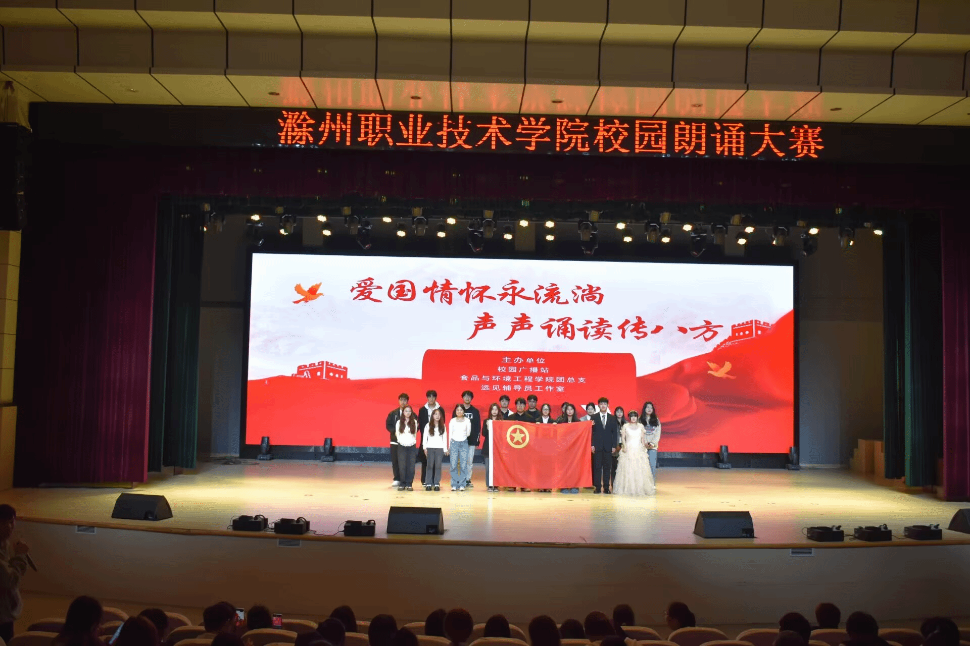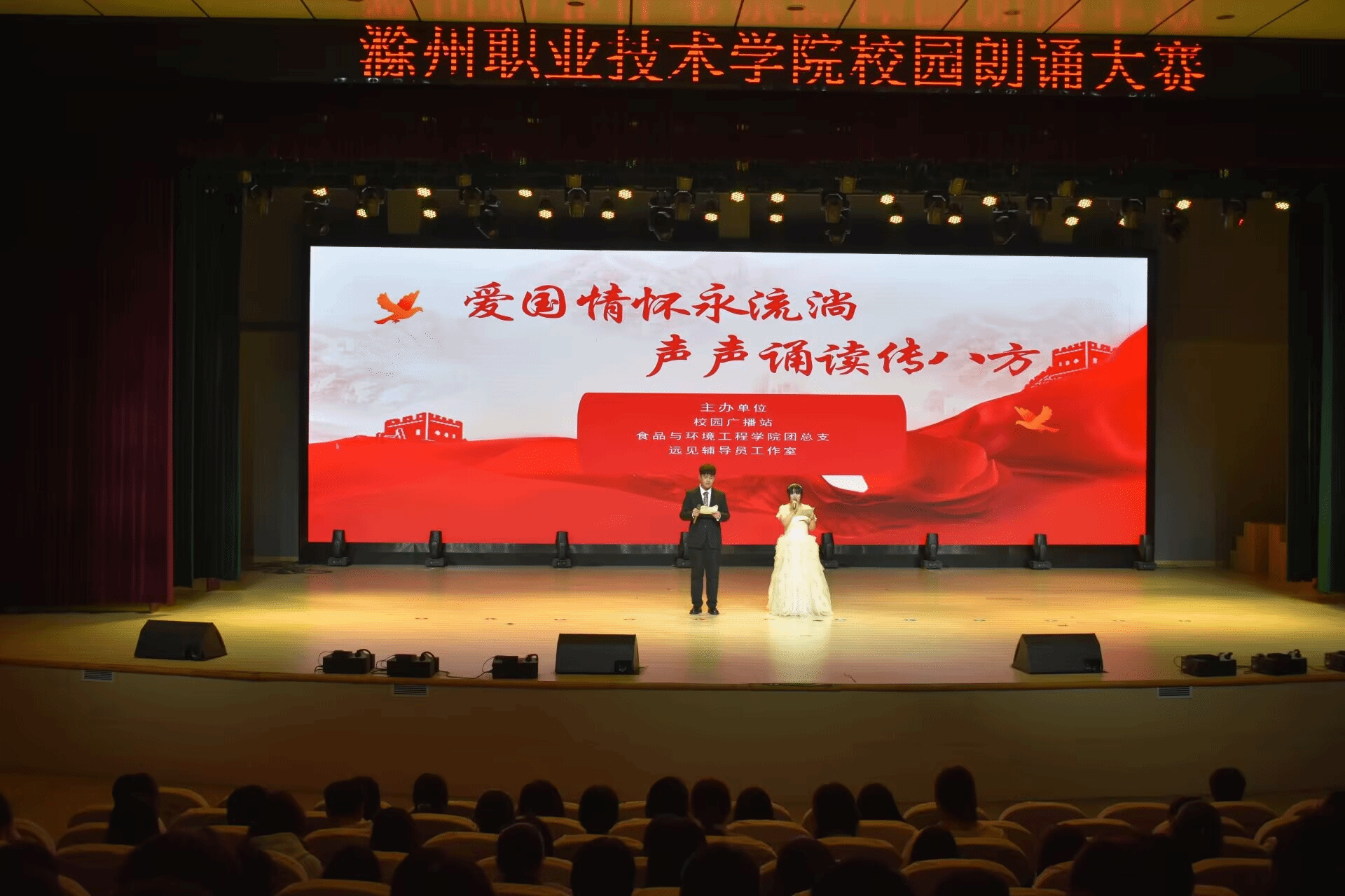 11月15日,由awc官网广播站、食品与环境工程学院团总支、远见辅导员工作室主办的“爱国情怀永流淌,声声诵读传八方”主题朗诵比赛在校大礼堂盛大开启。此次活动不仅是一场语言的艺术盛宴,更是全体师生共庆盛世华章、共抒爱国情怀的深情表白。