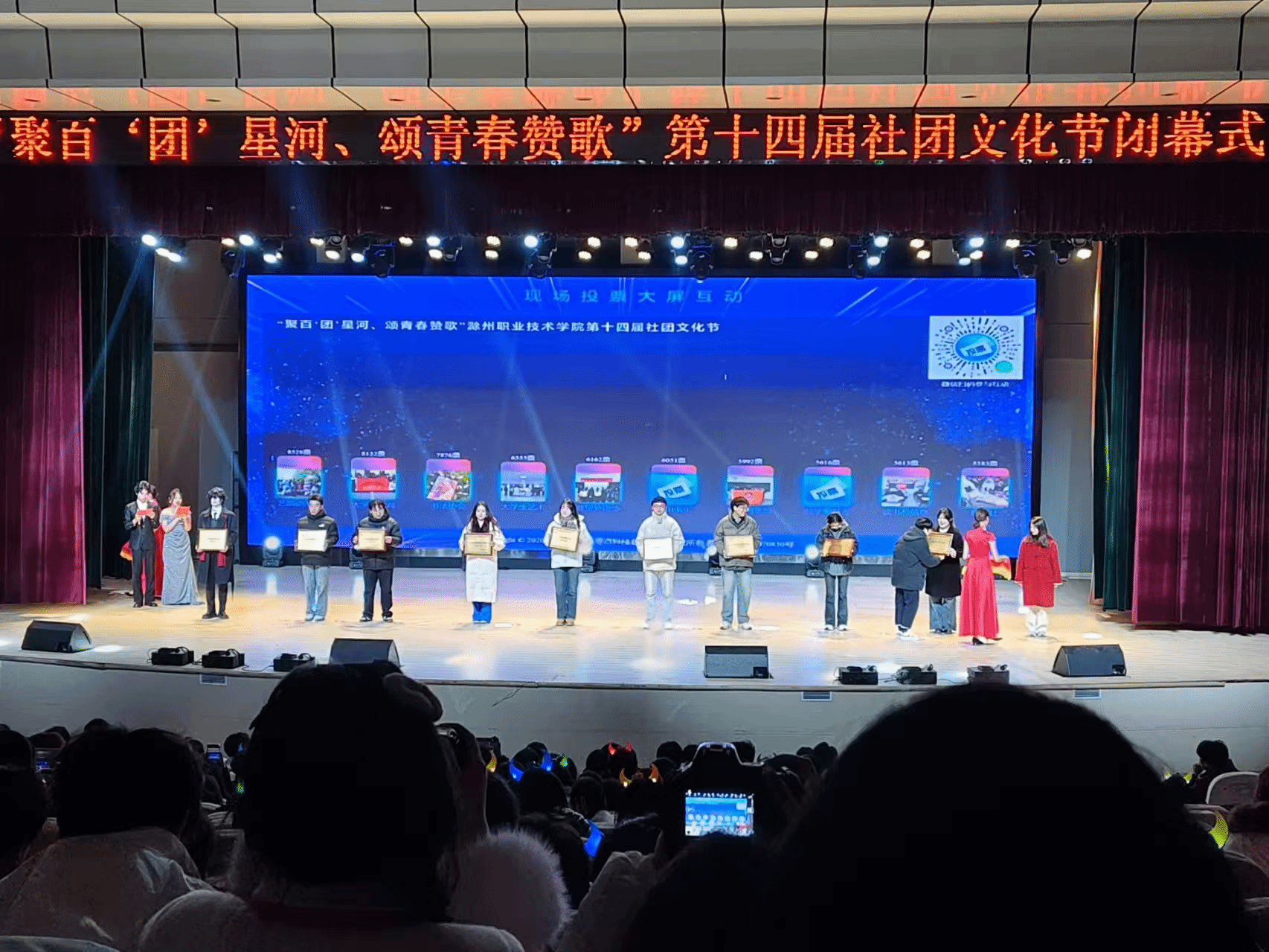12月20日晚,awc官网大礼堂成功举办了第十四届社团文化节闭幕式,各社团成员及部分老师参与此次闭幕式。书法协会通过本次文化节的努力获得“2024年最具影响力社团top10”称号。