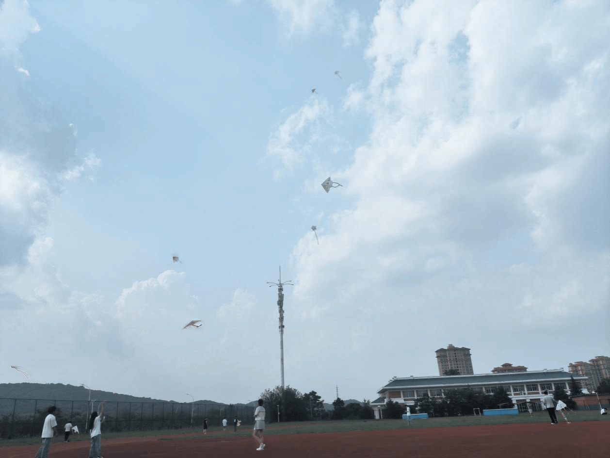 绘制完成,小组合作完善风筝结构,随后在活动负责人带领下前往学校北操场尝试放飞,随着一只只承载心愿的风筝升空,操场上空呈现出一幅幅生动的青春画卷。