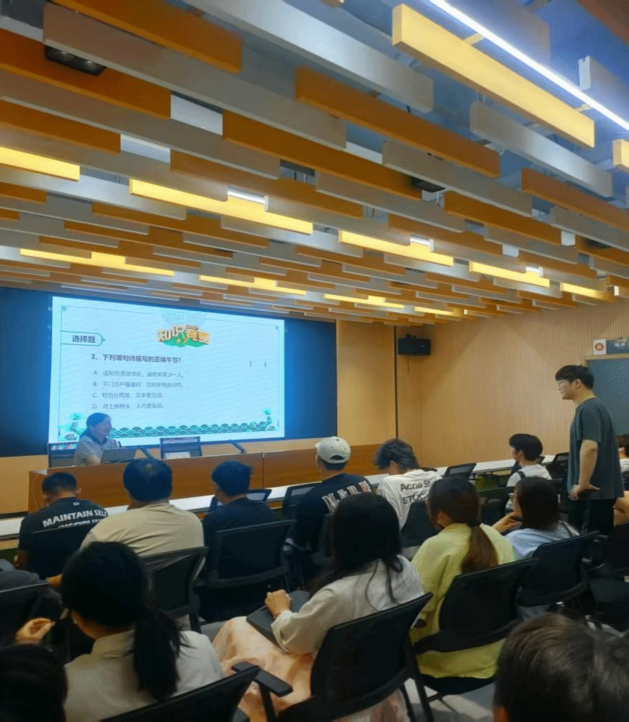 近日,为弘扬中华优秀传统文化,在端午佳节来临之际,一场别开生面的端午书法讲座于 5 月 28 日下午三点在一站式报告厅成功举办。此次活动由书法协会主办,吸引了众多书法爱好者、学生踊跃参与,大家在氤氲墨香中共同感受端午文化与书法艺术交织的独特魅力。
