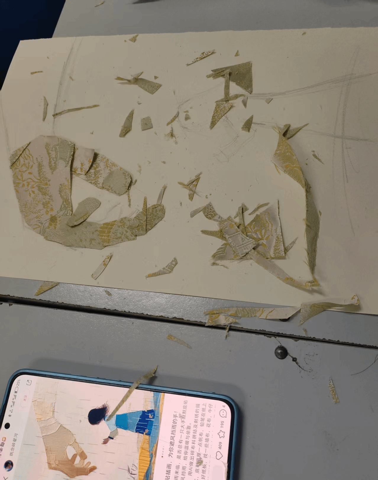布贴画本质上是一种利用废弃布料拼贴出一副作品,手工爱好者可以在纸上画出好看的图案,再根据需要的形状在废弃的布料上裁剪出来,用布料专用胶粘上去。同学们根据自己的想象创作出了很多好看的作品。