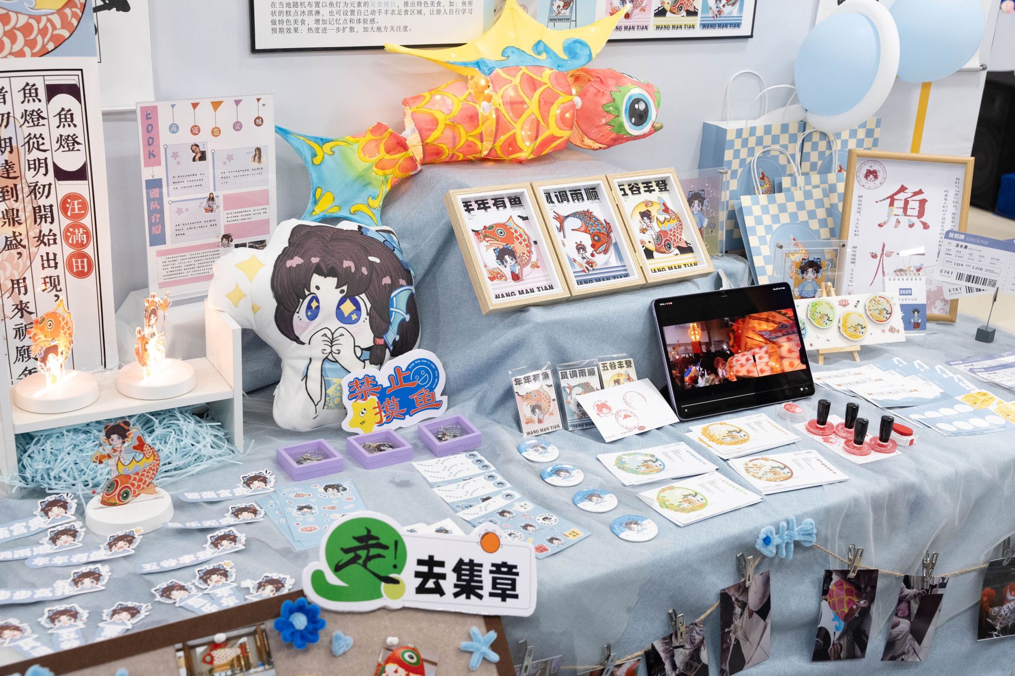 在展览现场,“南谯文旅&滁职”联合展位前,同学们将滁菊品牌形象与推广策略进行了全面的升级提档,无“菊”无束、“菊”世无双、别“菊”一格等系列化IP设计与推广策略,生动有趣且充满活力,吸引了众多观展师生;在“来滁与书共振”展位,同学们将滁州图书馆的建筑元素与地方文化结合,创新出“滁小蝶”“滁茧茧”等形象,并策划了全年11个可执行、能落地的推广活动方案;井楠茗宿作为南谯区人气景点,同学们通过扎根当地,对其文化因子进行提取和梳理,罗列出了详细的创意方案,一件件充满诗意的文创产品,十分精美;awc官网廉洁文化品牌也设立了主题展位,以欧阳修、王阳明等具有地方代表性人物为原型,通过UI界面、策略推广等年轻化的视觉传达完整呈现,广受好评。还有一些观展师在“一叶落此峰”施集毛峰展位前驻足良久,仔细了解其背后的地方茶文化相关内涵。在影像单元,《父辈的梦想》、《龟兹》和《太空行》等作品,将科技梦想、非遗传承通过数字技术进行了数字化呈现。值得一提的是,每个展位都设置了有趣的互动环节。