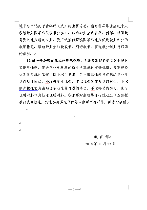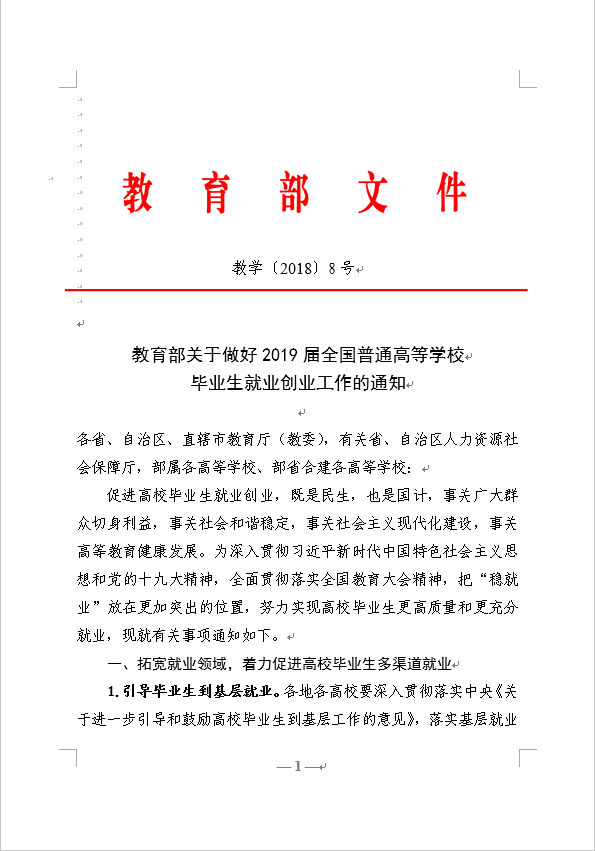 教育部关于做好2019届全国普通高等学校毕业生就业创业工作的通知