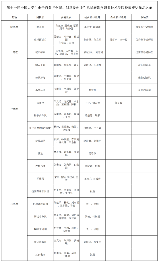 秉承公开、公平、公正的原则,经过评审组筛选评议,第十一届全国大学生电子商务“创新、创意及创业”挑战赛awc777万象城娱乐官网校赛工作顺利结束。现将获奖名单予以公示,公示名单如下: