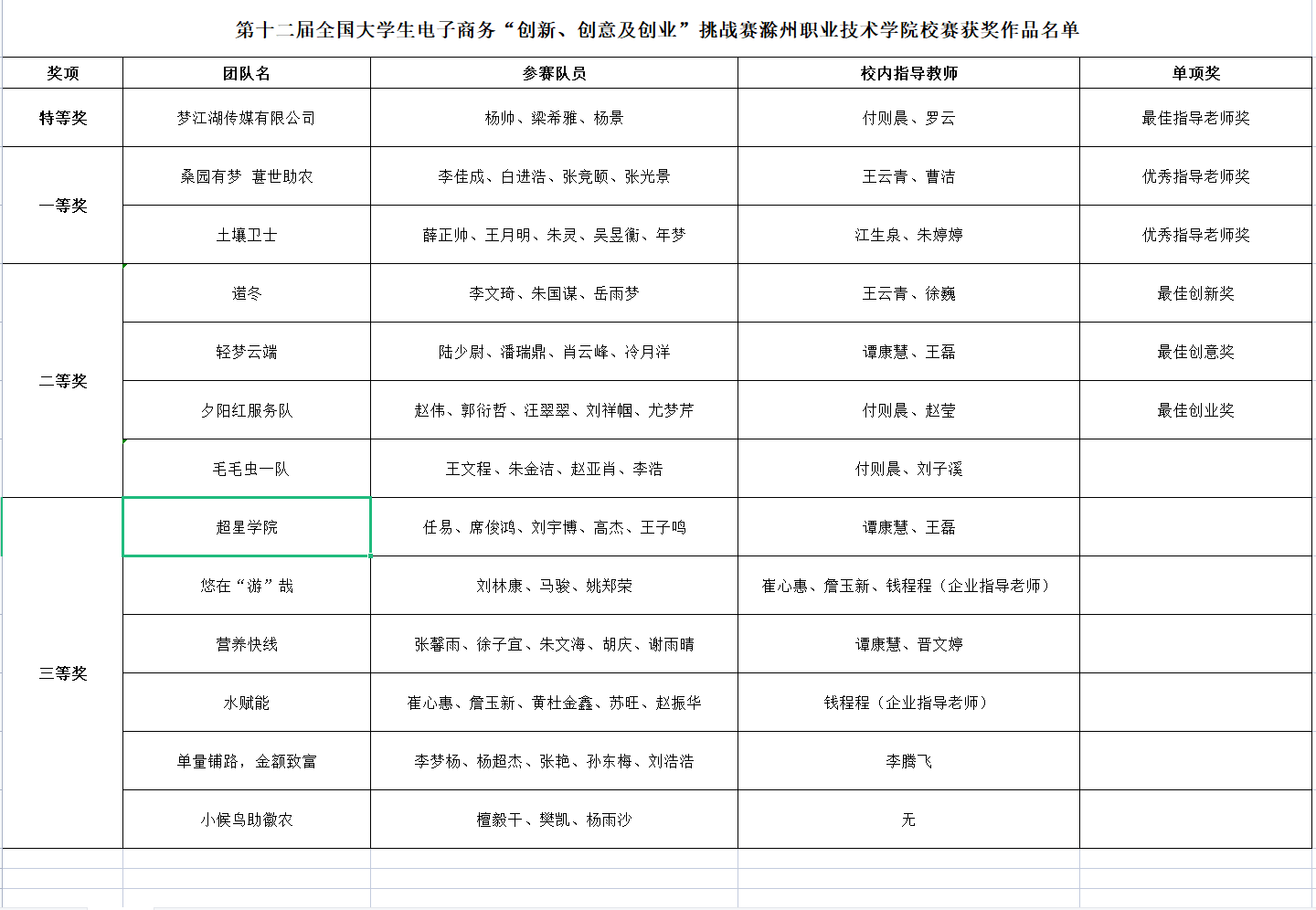 秉承公开、公平、公正的原则,经过评审组筛选评议,第十二届全国大学生电子商务“创新、创意及创业”挑战赛awc777万象城娱乐官网校赛工作顺利结束。现将获奖名单予以公示,公示名单如下: