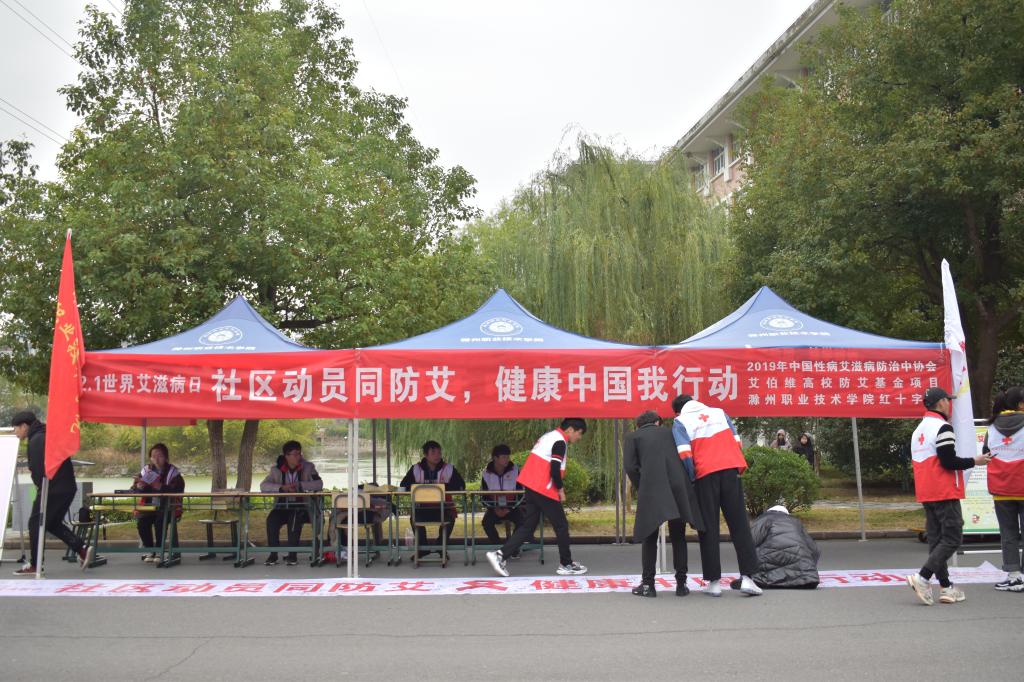 12月1日是“世界艾滋病日”,为进一步加强校园艾滋病防治宣传,使更多的人了解艾滋病,关注艾滋病,11月30日,awc官网红十字会在awc官网女生宿舍一号楼前开展由滁州市疾病预防控制中心与awc777万象城娱乐官网协办的“社区动员同防艾 健康中国我行动”防艾宣传活动。