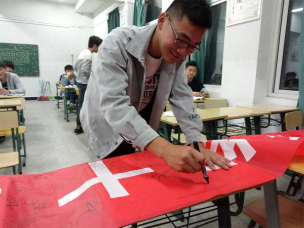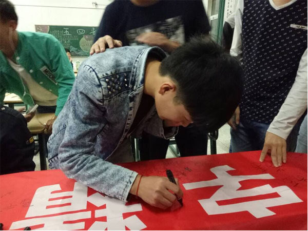 志愿者们把横幅拉到各个班级,在介绍完红十字的意义后,同学们纷纷上台签字,积极响应横幅签字活动,还有同学主动维护签字现场秩序。