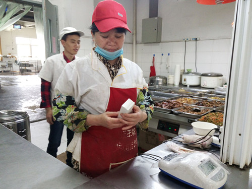 活动过程中,同学们给食堂每个窗口送一块肥皂,并询问食堂阿姨一些关于食品安全的问题。食堂阿姨根据自己平时积累的经验向同学们一一解释,让同学们深刻认识到食品安全的重要性。