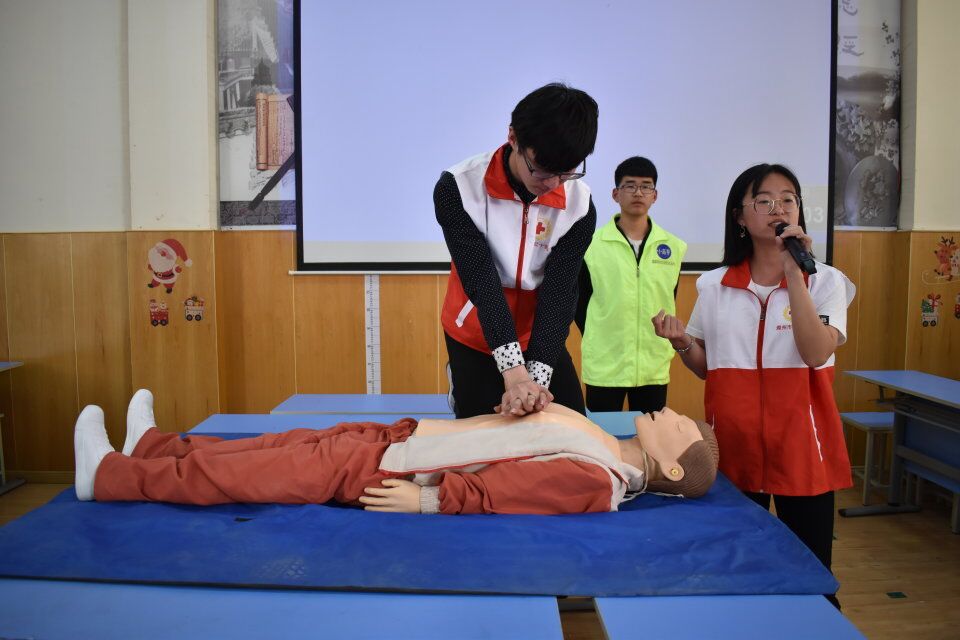“小青亭”志愿者们以鲜活悲惨的实例,触目惊心的数据向师生们深入浅出地讲述了防溺水的重要性和必要性以及如何规避溺水事故发生的注意事项等,并采取情景模拟的方式邀请在场同学尝试如何救助上岸后的溺水者,引起了在场同学们对防溺水的重视,在活动过程中同学们齐读预防溺水“六不准”“三字经”加深防溺水知识。随后,我院红十字会成员采用现场讲解和互动体验等形式,向同学们详细介绍了心肺复苏术的相关步骤以及正确方法,并利用模拟人现场进行了整个急救过程的演练,全方位地介绍了心肺复苏术。通过现场演示和与同学们互动,使学生们深刻认识到在遇到紧急情况时,该如何展开自救互救,救助过程中应注意急救的黄金时间及急救的生命链。