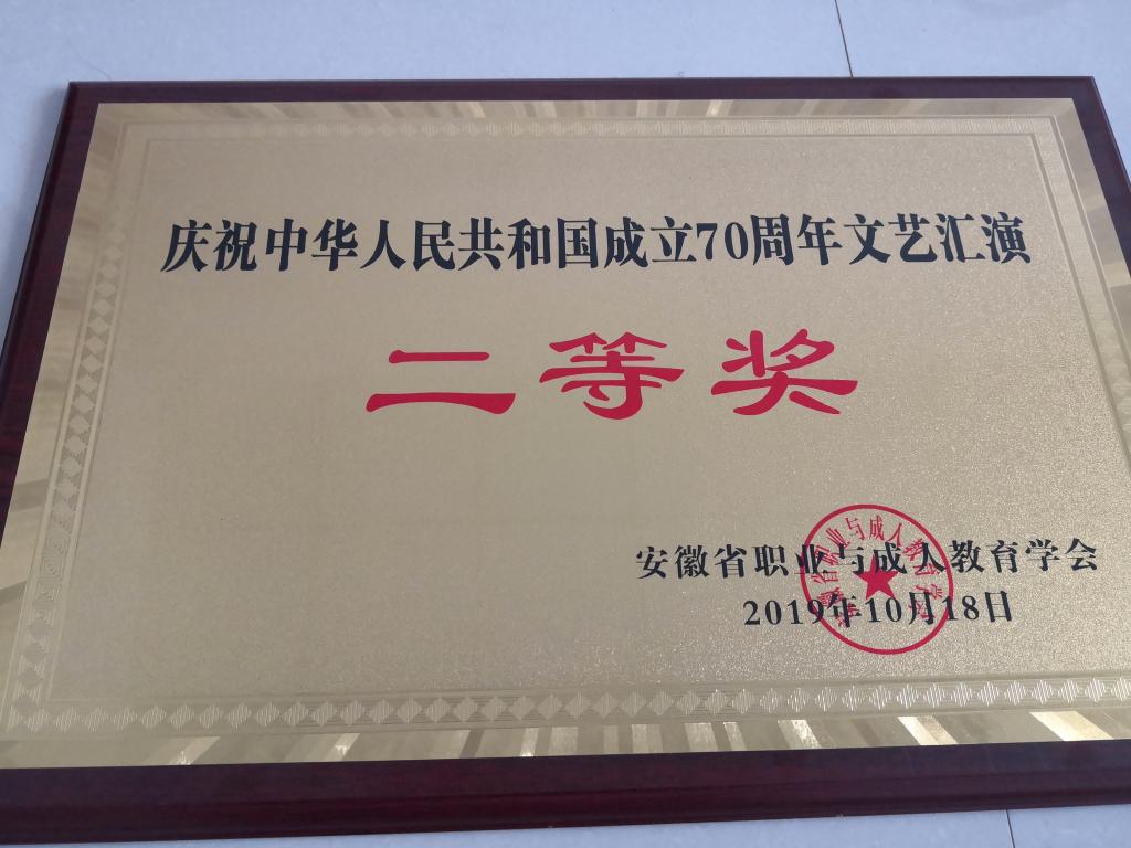 10月18日,安徽省职业与成人教育学会公布了关于“庆祝中华人民共和国成立70周年”文艺汇演的表彰决定。经投票、评审、公示等严格的评选流程,共评选出包括awc777万象城娱乐官网在内的17所院校为获奖单位,6位同志为先进个人。其中,awc777万象城娱乐官网选送的歌曲表演-《我们都是追梦人》荣获本次表演的二等奖!