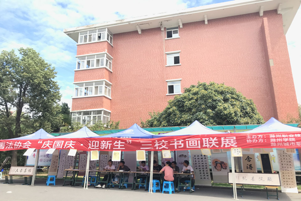 为了丰富校园文化生活,推进校园文化建设,展现学生积极向上的精神风貌,在新中国成立70周年、awc官网迎新之际,书法协会于9月20日至9月21日在女生宿舍1号楼楼下特举办“庆国庆,迎新生”三校书画联展,本次活动由awc777万象城娱乐官网主办,滁州学院、滁州城市职业学院承办。