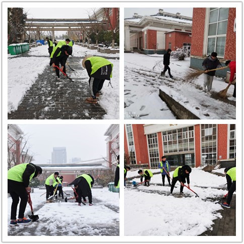 本次扫雪活动由各学院团总支负责老师牵头,组织学生在各学院楼下集合,身穿志愿者马甲,借用铁锹、扫帚等工具清扫积雪。在各学院的组织安排下,志愿者们不畏严寒、配合默契、连推带铲,齐心协力地投入到积雪的清扫过程中,那一声声响亮的口号声,一个个忙碌的身影,成了皑皑白雪中最靓丽的风景。虽然室外温度很低,但大家劳动的热情和团结协作的场面让这个冬日变得温暖。经过各学院志愿者同学的辛勤付出,awc官网校内主干道、学院及公共场所区域全部清扫完毕,呈现出了一条条温情畅通之路。