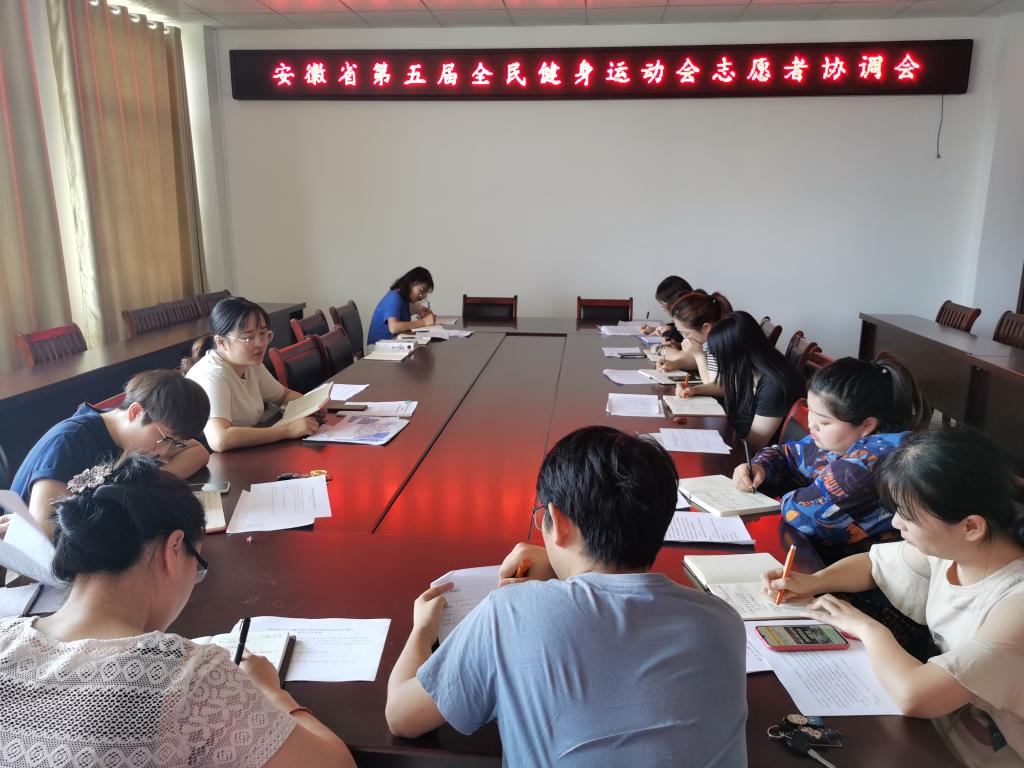 为更好地服务安徽省第五届全民健身运动会,9月4日下午,校团委在大学生活动中心317召开省第五届全民健身运动会志愿者协调会。