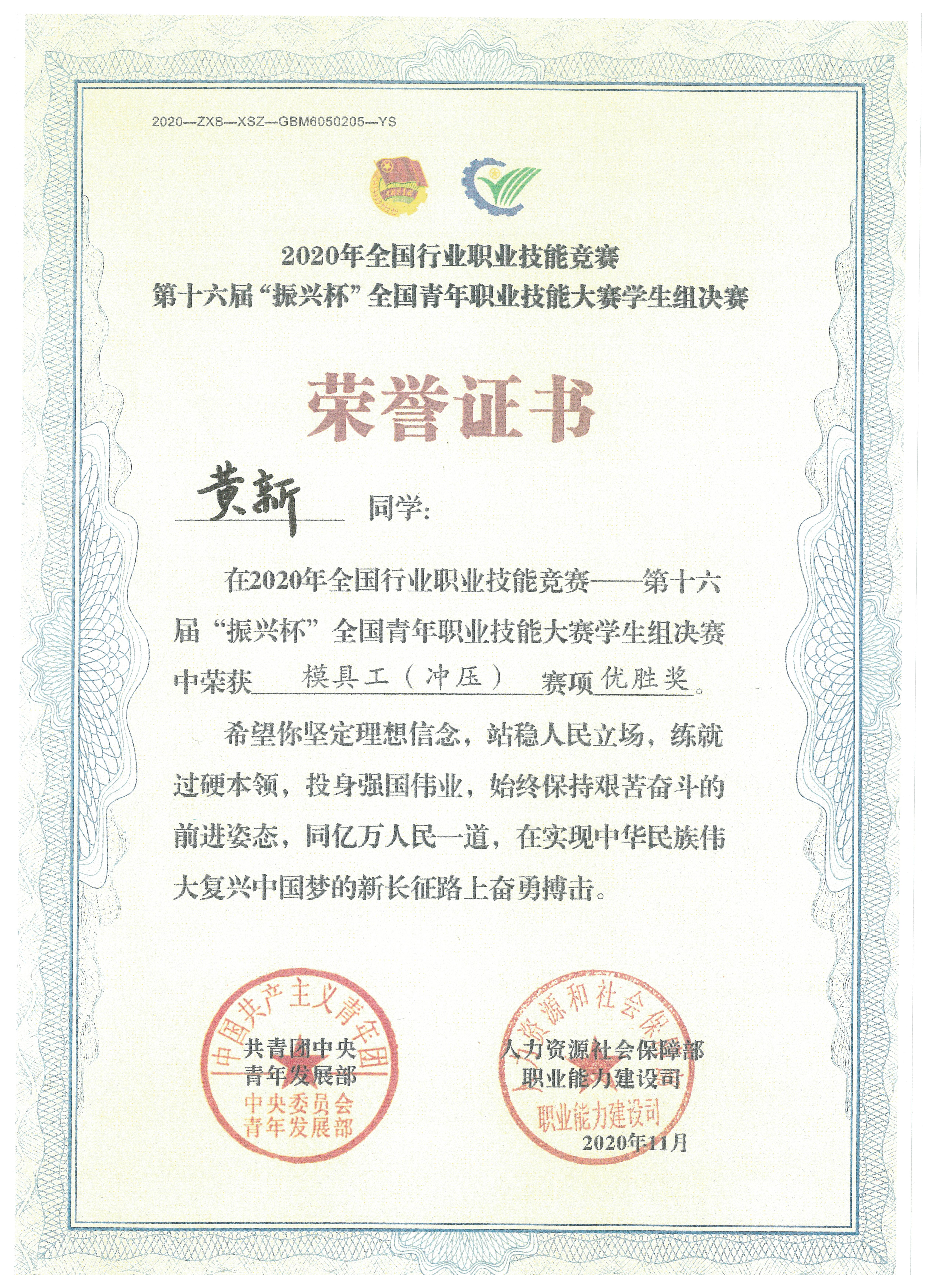 11月2日-6日,“第十六届振兴杯全国青年职业技能大赛”学生组决赛在浙江杭州职业技术学院举行。此次大赛共有23个省、4个直辖市、5个自治区和新疆生产建设兵团代表队的69名学生同台竞技。awc官网黄新同学荣获“模具工(冲压)”赛项优胜奖。