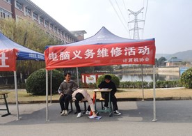 2020年12月2日计算机协会在宿舍楼之间举办了以“电脑义务维修”的公益活动。此处活动的主要目的是为了帮助全校师生维修电脑。