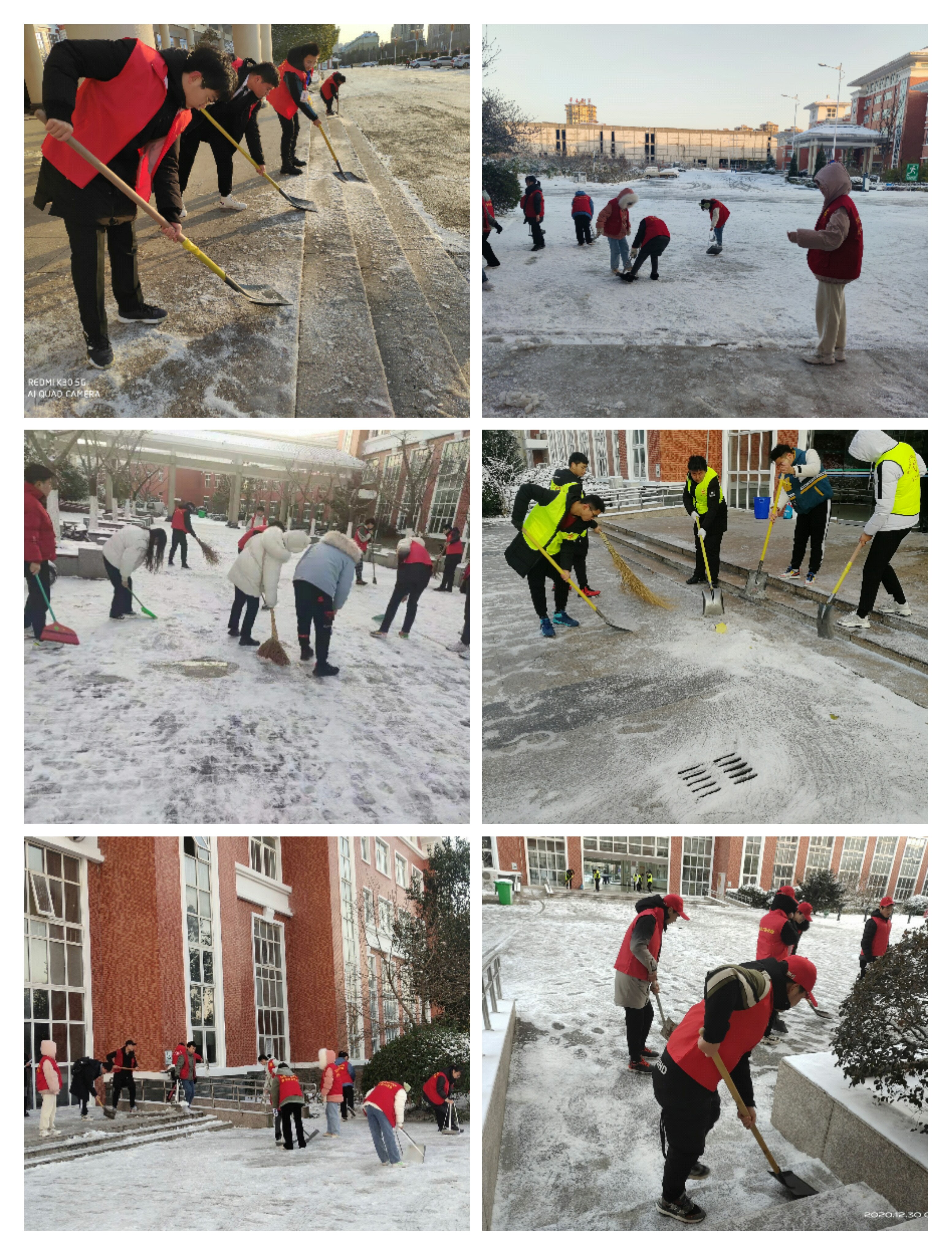 在各学院团总支负责老师牵头下,志愿者们身穿马甲,开展扫雪活动,畅通道路、消除隐患,保证学校的正常教育教学秩序。大家拿起铁锨、扫帚等工具积极投入到了清扫校园积雪的工作,展开了一幅热火朝天的劳动画面。经过各学院志愿者同学的辛勤付出,awc官网校内主干道、食堂及公共场所区域全部清扫完毕,呈现出了一条条温情畅通之路。
