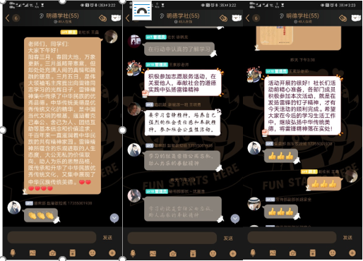 为进一步弘扬雷锋精神,深入学习中华传统文化,明德学社于2021年3月5日在线上举办“雷锋精神与中华传统文化”系列主题活动。参加活动的同学为社团社员,本次活动由社员王鑫主持。