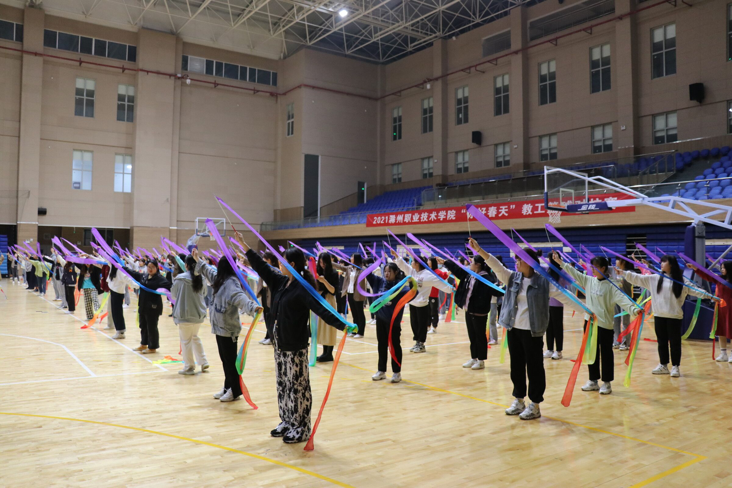 自4月6日开始,校团委、各二级学院团总支就利用晚上时间组织所有参演学生排练。为达到高质量的演出效果,400余名师生始终保持着良好的训练状态,尽管过程漫长艰辛,但所有参与人员都努力克服困难,始终坚持着。同学们纷纷表示:“排练虽然很累,但是越来越进入状态就觉得一切都值得,希望能在表演中把我们最棒的一面展现给大家,展现出滁职学子的风采!”