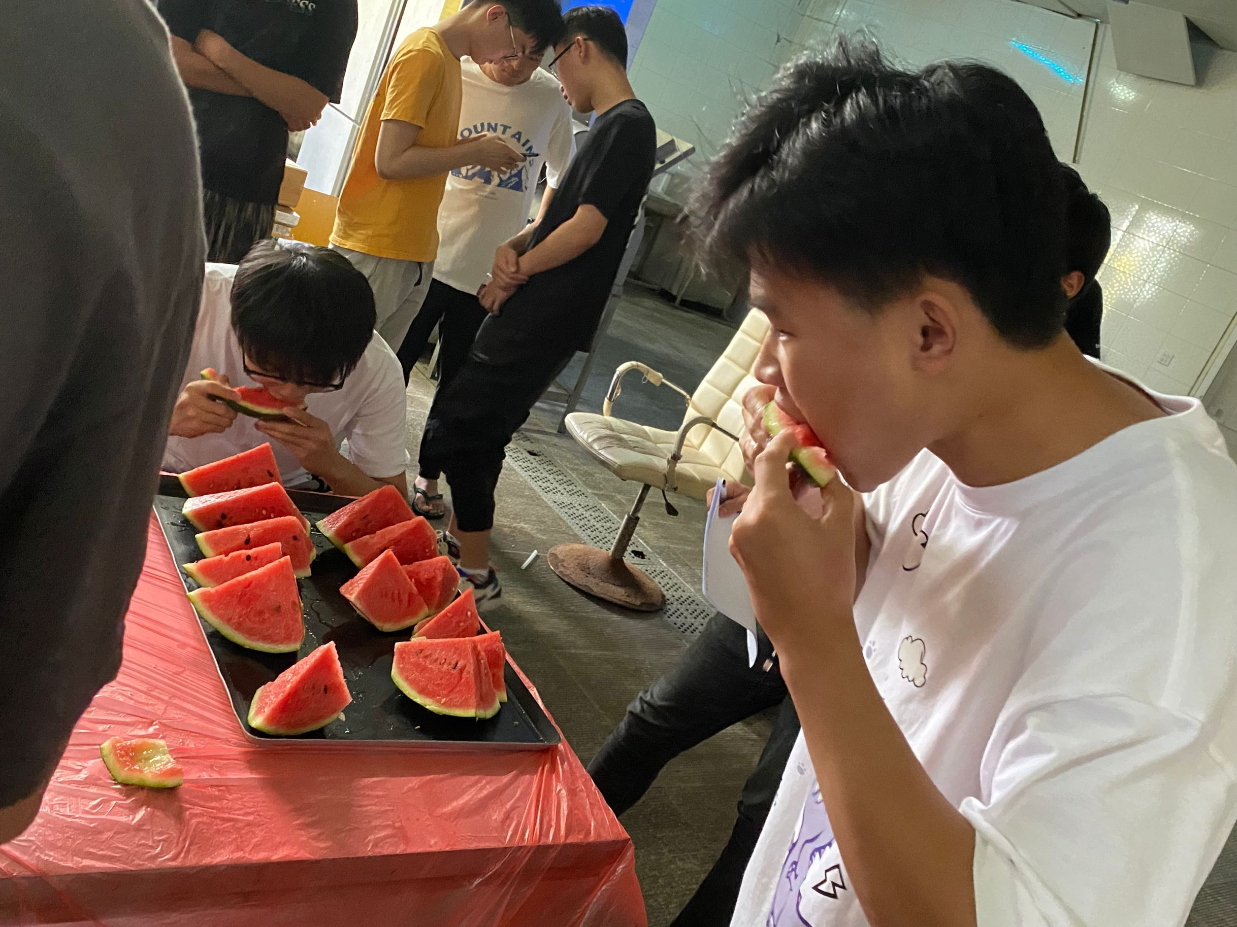2021年6月23日在炎热的夏季,吃西瓜可算得上是一大快事。今天下午食品与营养协会举办了“吃西瓜大赛”相比于外面的灼灼烈日,室内的吃西瓜大赛也在如火如荼的进行中,同学们的热情高涨,吃西瓜大赛也为他们带来了一大乐趣,甚至部分同学因过于积极中午饭都没吃,只为了参加我社比赛。比赛最终选出了冠军一名,亚军两名等奖项。