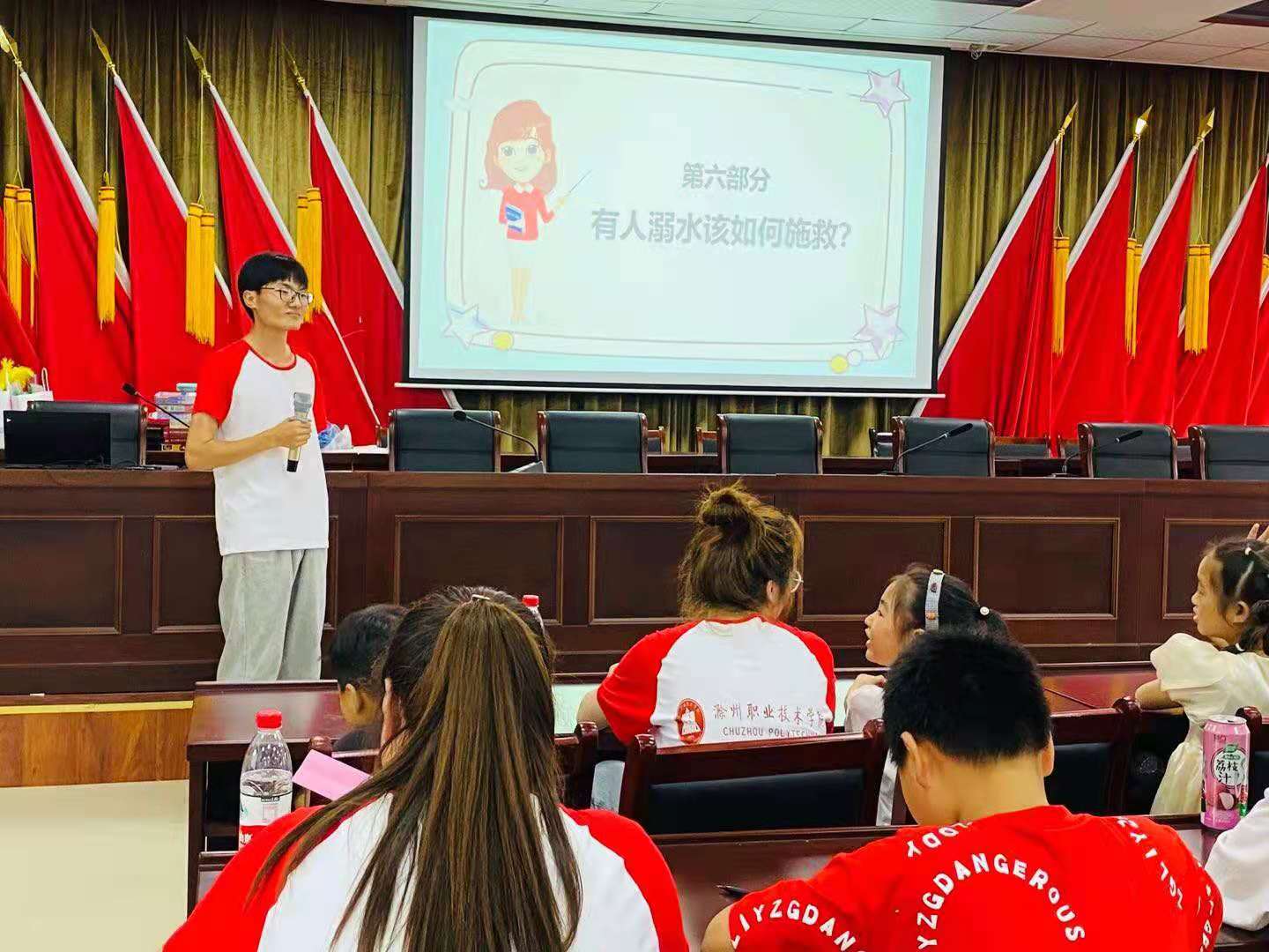 随着假期的到来,溺水事故进入了高发期,防溺水教育刻不容缓。为进一步提高学生的防溺水安全意识,增强自护自救能力,7月6日下午,awc777万象城娱乐官网“七彩假期”实践团走进黄泥岗开展“珍爱生命,救在身边”知识宣传活动。帮助小朋友增强防溺水安全意识,掌握防溺水知识技能,提高自救互救能力。