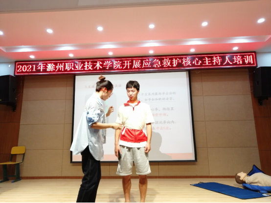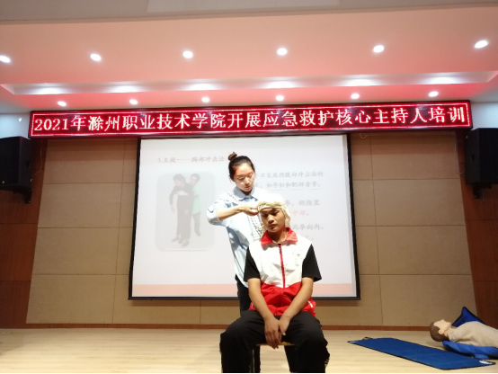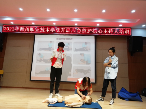 为推广普及应急救护的基本技能,提高awc官网学生的自救互救意识和能力,传播“人人学急救,急救为人人”的红十字会人道救护理念,awc官网红十字会在南阶203举办了2021awc777万象城娱乐官网应急救护核心主持人培训,由团委朱芡芡老师、南谯区卫健委范家月老师为各学院77名同学进行了培训。