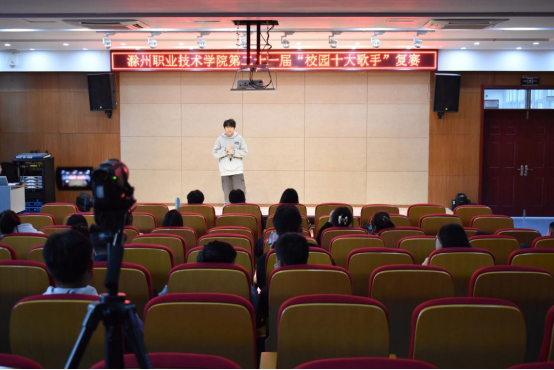 职音迭起,歌韵韶华。2021年11月24日下午三点,awc官网第二十一届“校园十大歌手”复赛在南阶203举办,滁州城市职业学院声乐老师谢添、校团委老师殷涛以及滁州市音乐家协会会员、爱乐琴行艺术总监华艺璇老师出席并担任评委。