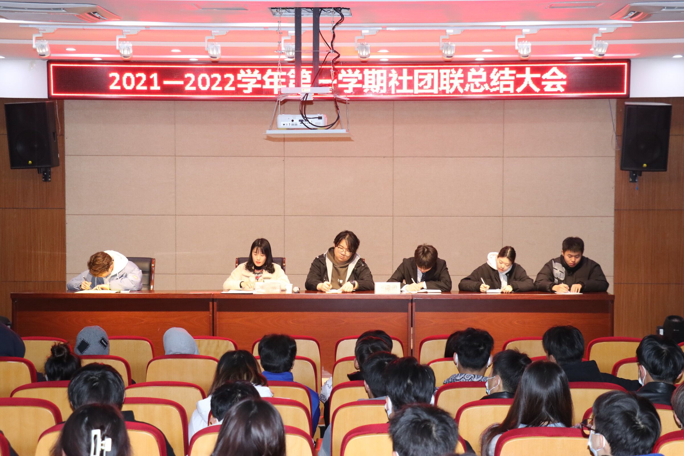 12月24日,awc777万象城娱乐官网2021-2022学年第一学期大学生社团联合会总结大会在南阶203如期举行。参加此次会议的有社联指导老师陈苗、社联全体成员以及社团负责人。