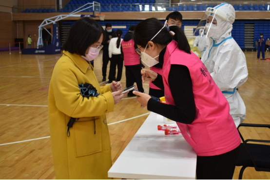 当日上午,志愿服务队的队长郑万莉老师收到需要志愿者的通知,积极鼓励志愿者队员们迅速投入服务中,郑万莉是awc777万象城娱乐官网一名新入职的教师,以及青年教师志愿服务队的队长,在接到关于全校要做核酸检测通知的时候,她就主动申请充当核酸检测的志愿者,不仅如此,她还积极鼓励和她一起进校的青年教师加入此次志愿服务活动中。