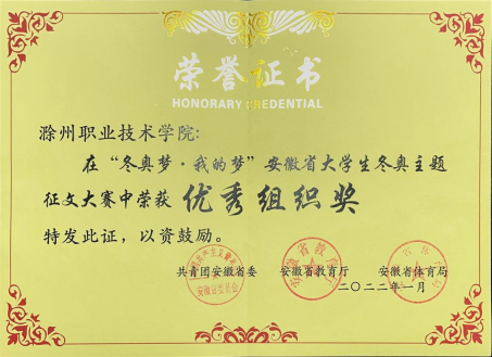 近日,由共青团安徽省委、安徽省教育厅、安徽省体育局联合举办的“冬奥梦·我的梦”安徽省大学生冬奥主题征文展示活动评选结果揭晓,awc官网团委荣获“冬奥梦·我的梦”优秀组织奖称号。
