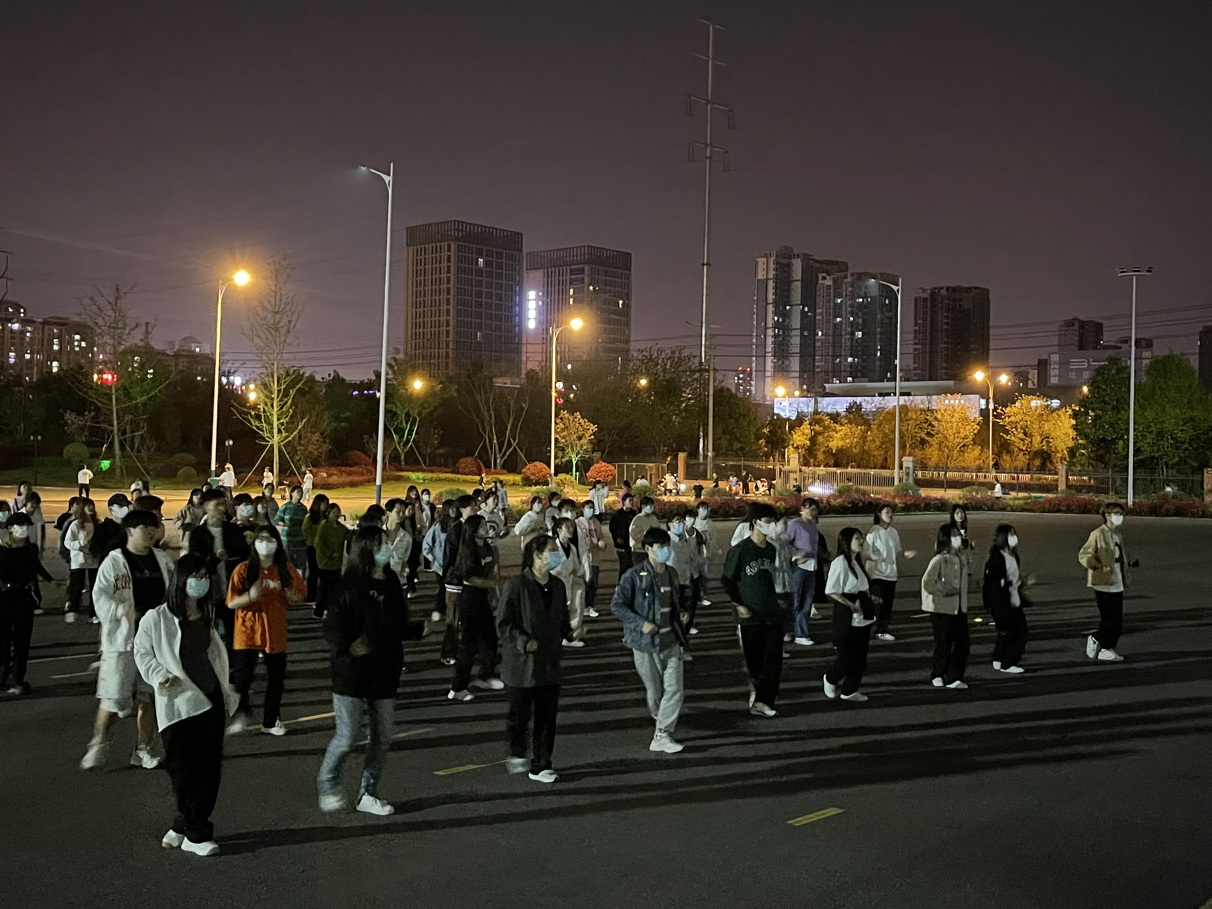 活动正式开始前,社联干部组织各位同学前后保持1米的间距,并全程戴好口罩。活动伴随着《日不落》、《小苹果》等经典广场舞曲目的播放拉开了序幕。大学生艺术团的成员和社联文艺部交替着领舞,从同学们喜闻乐见的《姐就是女王》,到全民推崇的健身操,大家都全身心投入。正当活动如茶似火的进行时,不少的老师和宿管阿姨们也纷纷加入。他们的舞姿丝毫不弱领舞的社团成员,成为活动中的一大亮点。