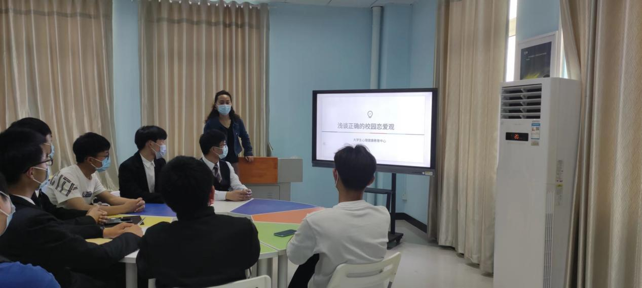 为了给大家树立正确的恋爱观,引导各位同学正确对待感情。心理协会于4月27日下午在大学生心理健康教育中心开展“浅谈校园正确恋爱观”讲座活动。本次讲座由心理协会指导老师冯研主讲,以充满幽默的话语向大家传达正确校园恋爱观。