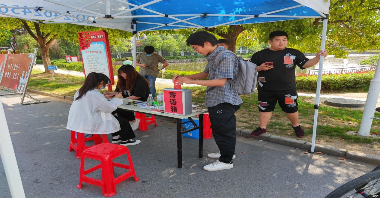 活动开始,社团人员积极向同学们宣传本次活动。然后给参与的同学分发明信片和笔,引导同学们在纸上写下自己的美好寄语。同时,也向各位同学科普一些疫情防控的知识。在本次活动中,工作人员认真负责,同学们积极参与,活动效果良好。