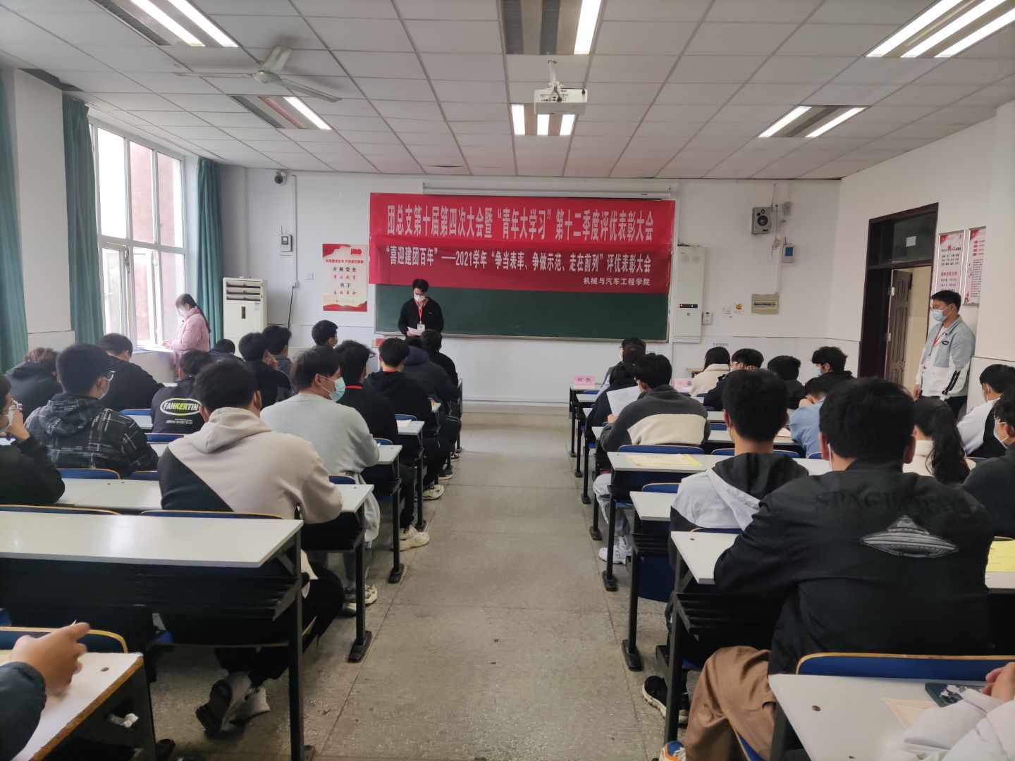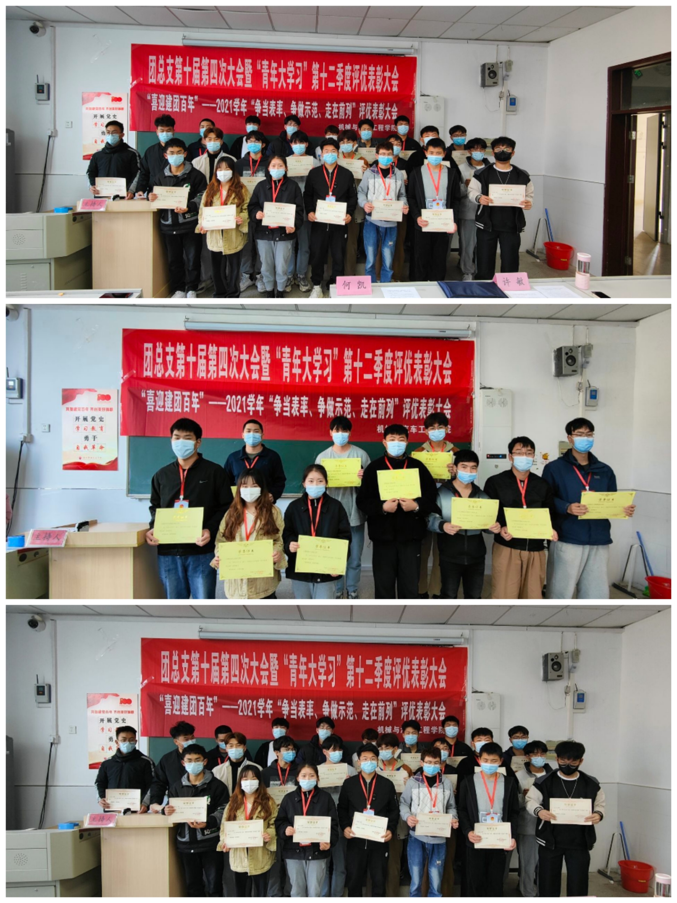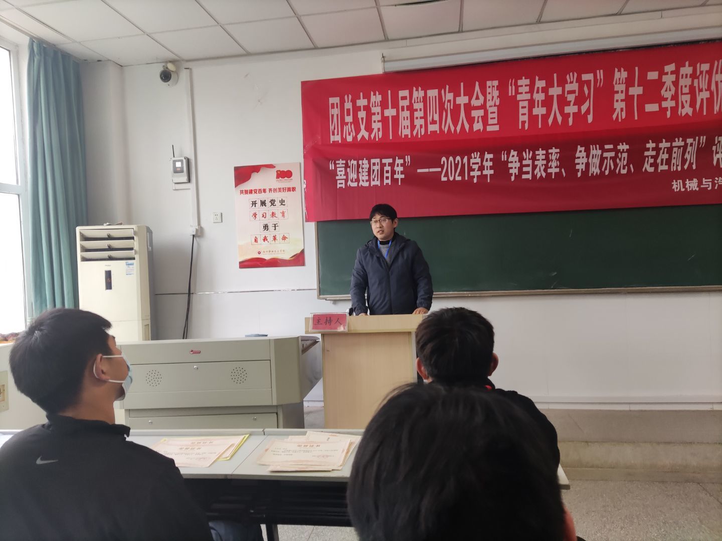 为及时总结经验,表彰先进,推动我院团总支工作再上新台阶,机械与汽车工程学院团总支于2022年3月24日中午在5106教室举办第十届第四次大会暨2021学年“争当表率、争做示范、走在前列”“先进个人”、第十二季度“青年大学习”评优表彰大会。参加本次大会的有机械与汽车工程学院团总支书记何凯老师,许敏老师,副书记王鑫同学、张滨川同学,团总支全体干事以及20级、21级各班级团员代表。