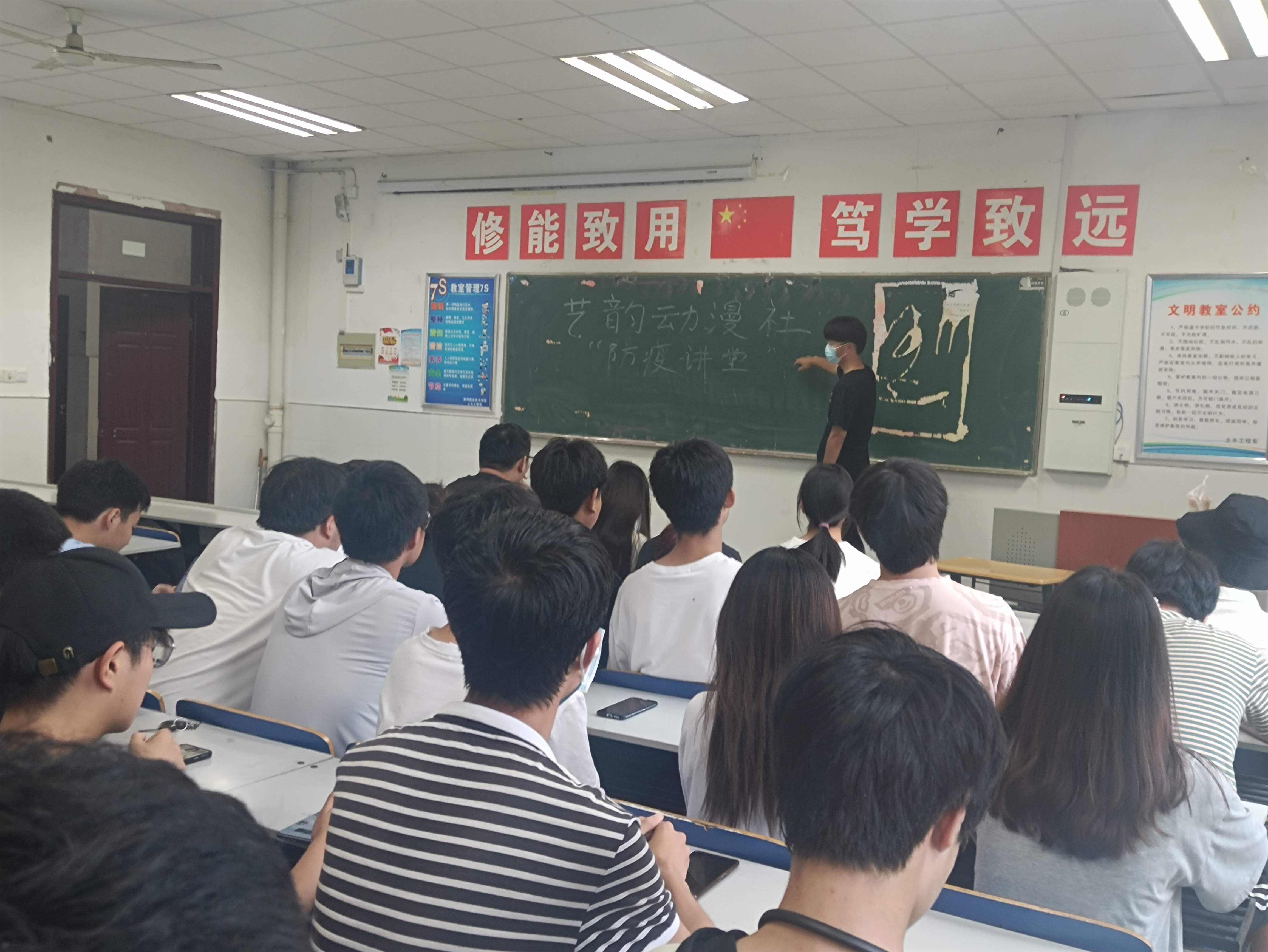 2022年5月29日下午,动漫社在学校四号楼4101教室开展防疫讲堂活动,出席活动的有动漫社的全体成员。