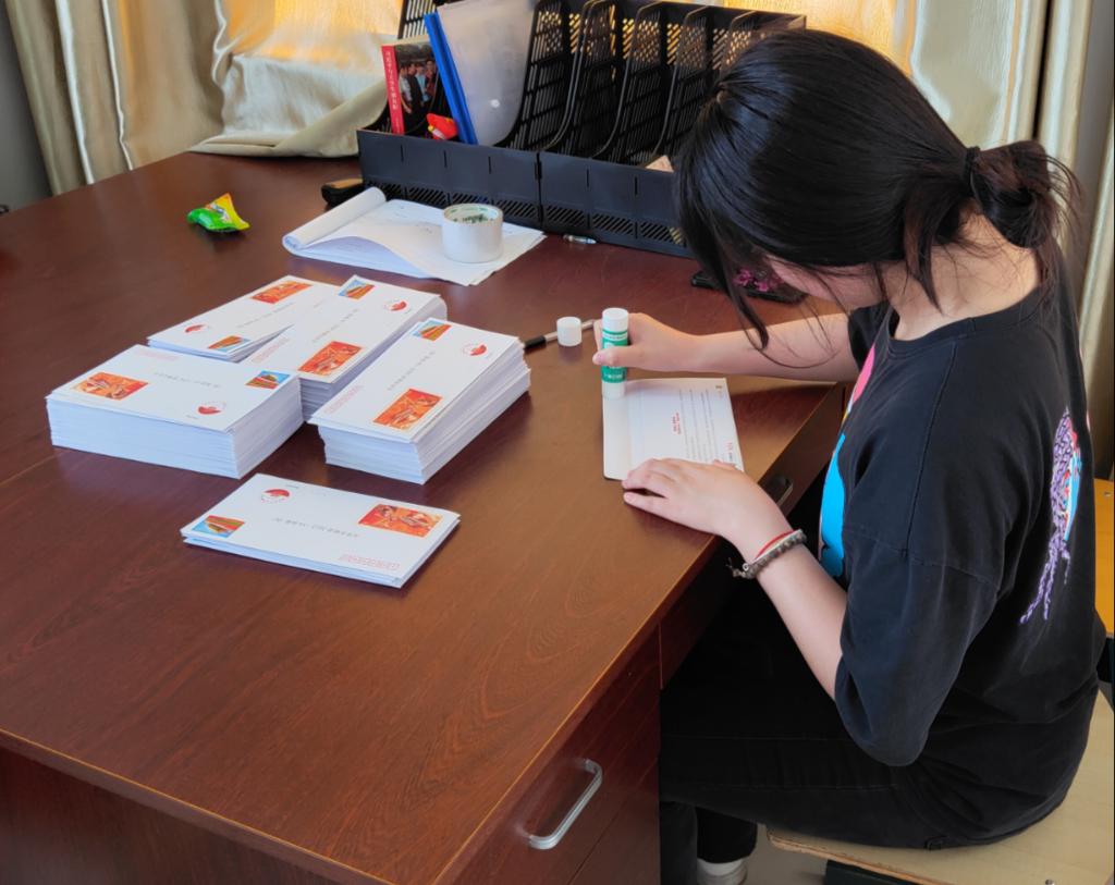 活动期间,团委通过多种途径宣传并组织同学们参与到活动中来,累计12个学院、250名学生代表参与其中。同学们纷纷领取明信片并认真地在明信片上写下了自己的铮铮誓言,表达对党、团的祝福以及“请党放心 强国有我”的决心。最后,团委学生干部认真收集、整理、投递同学们写好的明信片,这些明信片将在党的生日这天加盖天安门邮局的邮戳并最终回到大家手里。