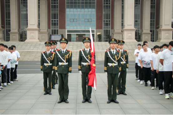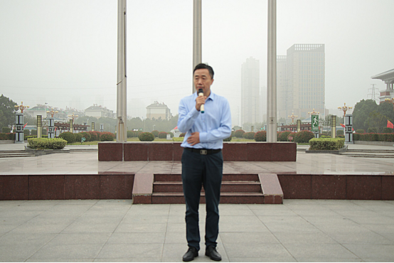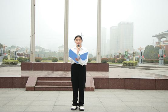 国旗护卫队踏着整齐有力的步伐,伴着雄壮的国歌声响起,五星红旗徐徐上升,全体人员注目行礼。教师代表倪子旭以及学生代表樊文静同学在国旗下进行演讲,随后由杨家庆书记为全体师生在国旗下上了一堂生动的微团课。杨家庆书记对在场学生提出了三点要求:一是青年学生要树立远大理想,增强做中国人的志气;二是青年学生要厚植爱国情怀,增强做中国人的骨气;三是青年学生要练就过硬本领,增强做中国人的底气。