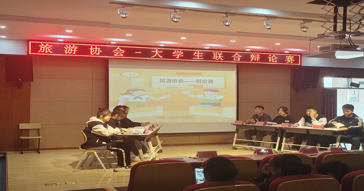2022年11⽉6⽇下午,由旅游协会举办的“辩论赛”决赛在南阶203隆重举⾏。此次辩论赛由旅游协会会员杨灿主持,旅游协会社长方鑫苗和协会部长担任评委,旅游协会、清峰文学社、管理学院学生会成员观摩了此次活动。