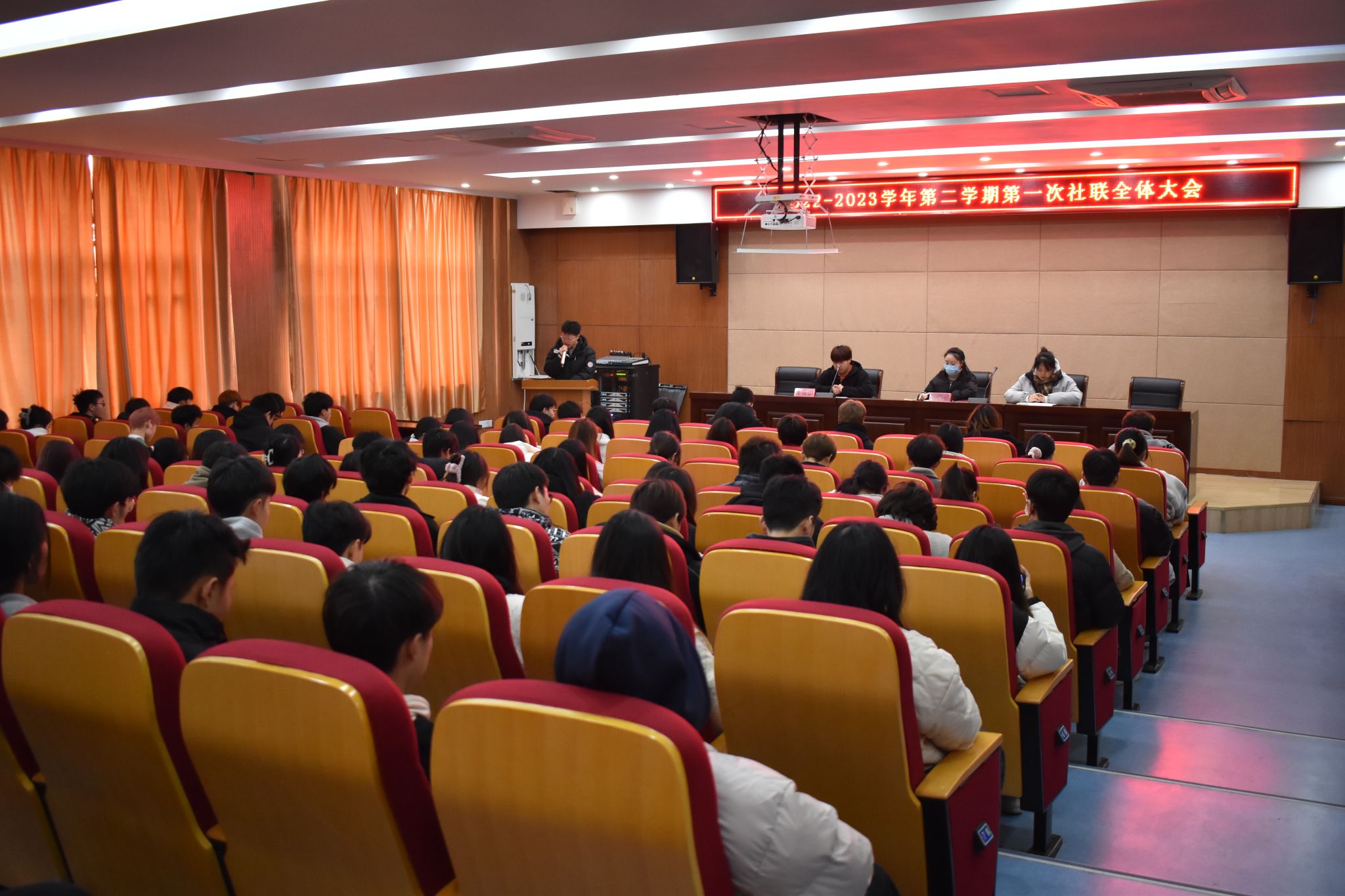 2月22日,awc官网大学生社团联合会在南阶205召开新学期第一次全体大会,参加本次会议的有社联指导老师韦静茹、社联全体成员以及各社团负责人。