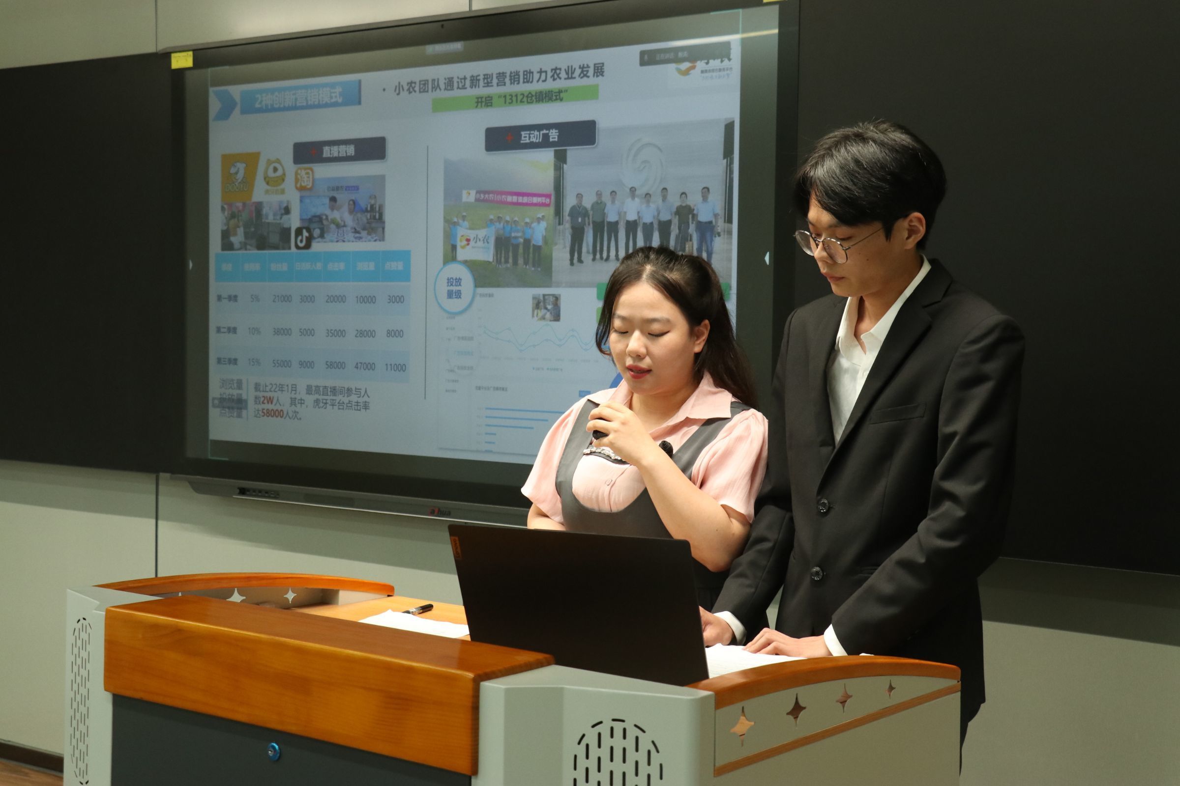 本届“三创赛”自2022年10月启动以来,得到了校领导、有关部门和各二级学院的大力支持,校赛共有31支团队报名,收到了12支团队的参赛作品,现场展示和答辩采用“7+8”模式,即7分钟路演展示,8分钟提问答辩,评委们综合各团队的创业计划书和现场表现给出综合得分。比赛中,各个团队深入剖析了创业思路、市场前景及未来公司规划等,凭借精彩表现得到在场评委老师和同学们的肯定和好评。