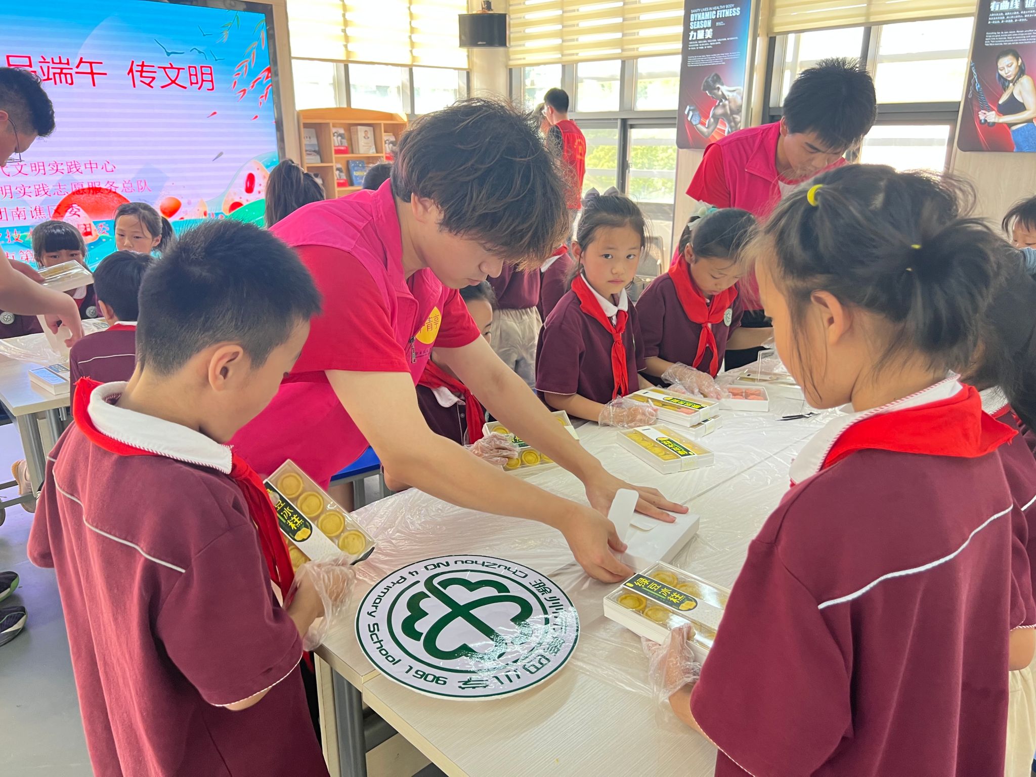 小小绿豆糕,浓浓端午情。通过开展“大手拉小手——品端午 传文明”主题活动,学生们不仅感受到浓浓的节日气氛, 又能在不断地进步实践中增进学生们对中国传统文化的了解。滁职学子们用满溢的爱心诠释了“奉献、友爱、互助、进步”的志愿服务精神,小朋友们和志愿者们在欢声笑语给都留下了温馨美好的回忆。