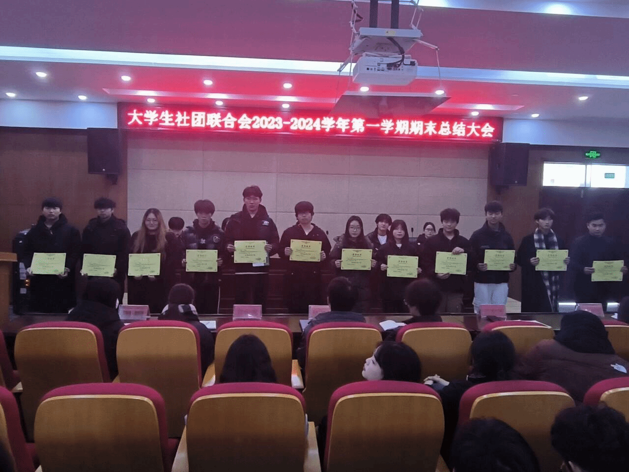 会议第一项:由主席徐晶晶做社联述职报告,回顾本学期社联参与的迎新志愿服务、迎新晚会、校第十九届田径运动会开幕式、安徽省第七届大学生艺术展演器乐专项展演、社团招新、社团改革等多项重大活动,同时也指出工作中存在的一些问题和不足。会议第二项:表彰社联优秀学生干部并颁发荣誉证书。会议第三项:社联优秀学生干部代表周宗杨发言。会议第四项:社联指导老师韦静茹发表讲话,对本学期社联工作进行总结,并详细规划各个部门第二学期的工作内容,希望社联成员能够加强学习,提高自身知识水平;加强团结,营造良好的社联氛围;加强创新,在以后的工作中提出更加新颖的观点。