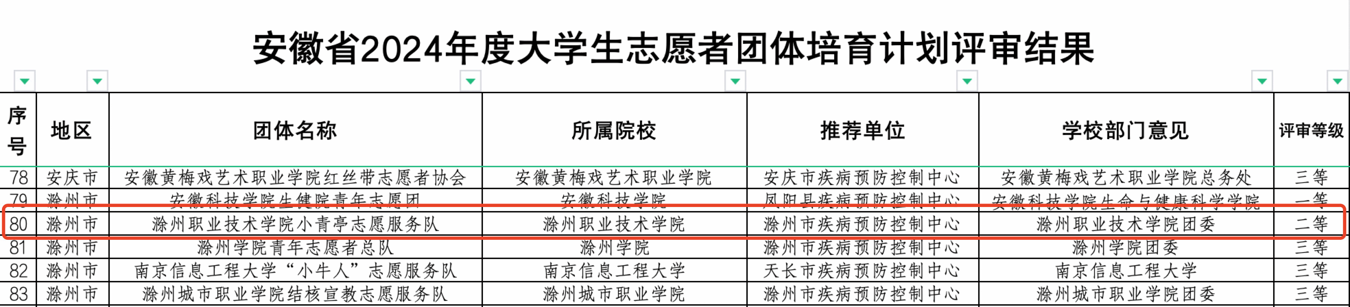 近日,awc官网小青亭志愿者愿服务队获批2024年度“安徽省百千万志愿者结核病防治知识传播活动大学生志愿者团队培育计划”二等资助,是滁州市区高校今年最好成绩。