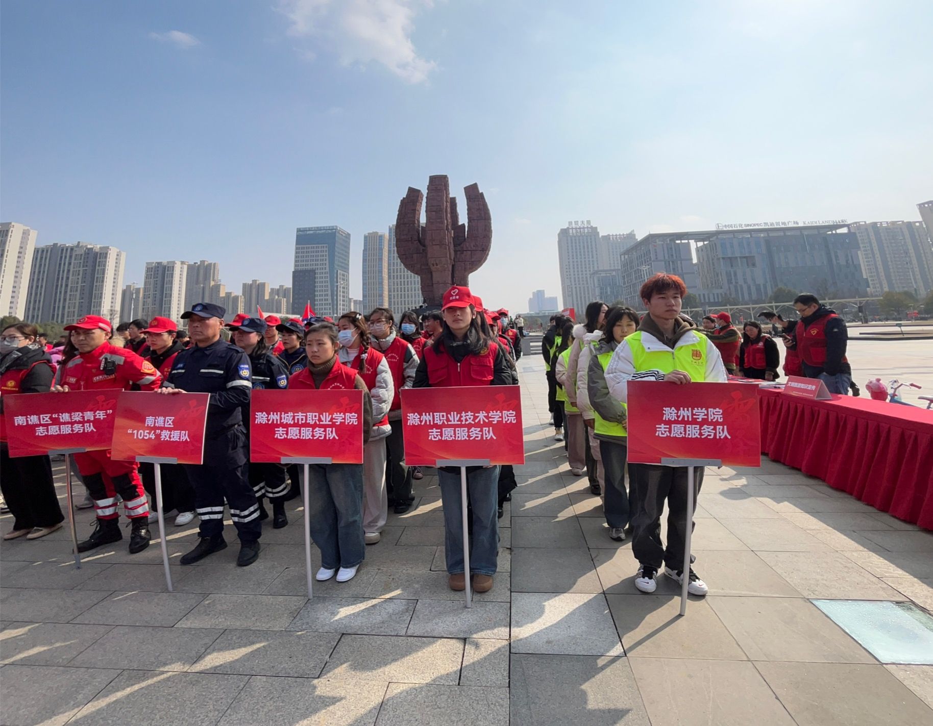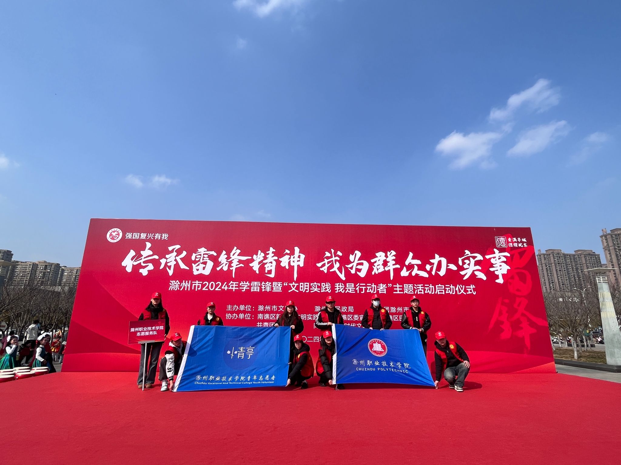 2024年3月2日上午,由滁州市文明办、滁州市民政局、共青团滁州市委联合主办的滁州市2024年学雷锋暨“文明实践 我是行动者”主题活动启动仪式在滁州市农歌会广场隆重开幕,awc官网团委接到工作任务后高度重视,从awc官网小青亭志愿服务队中筛选出10名优秀志愿者前往现场参加志愿服务活动,受到活动主办方一致好评。