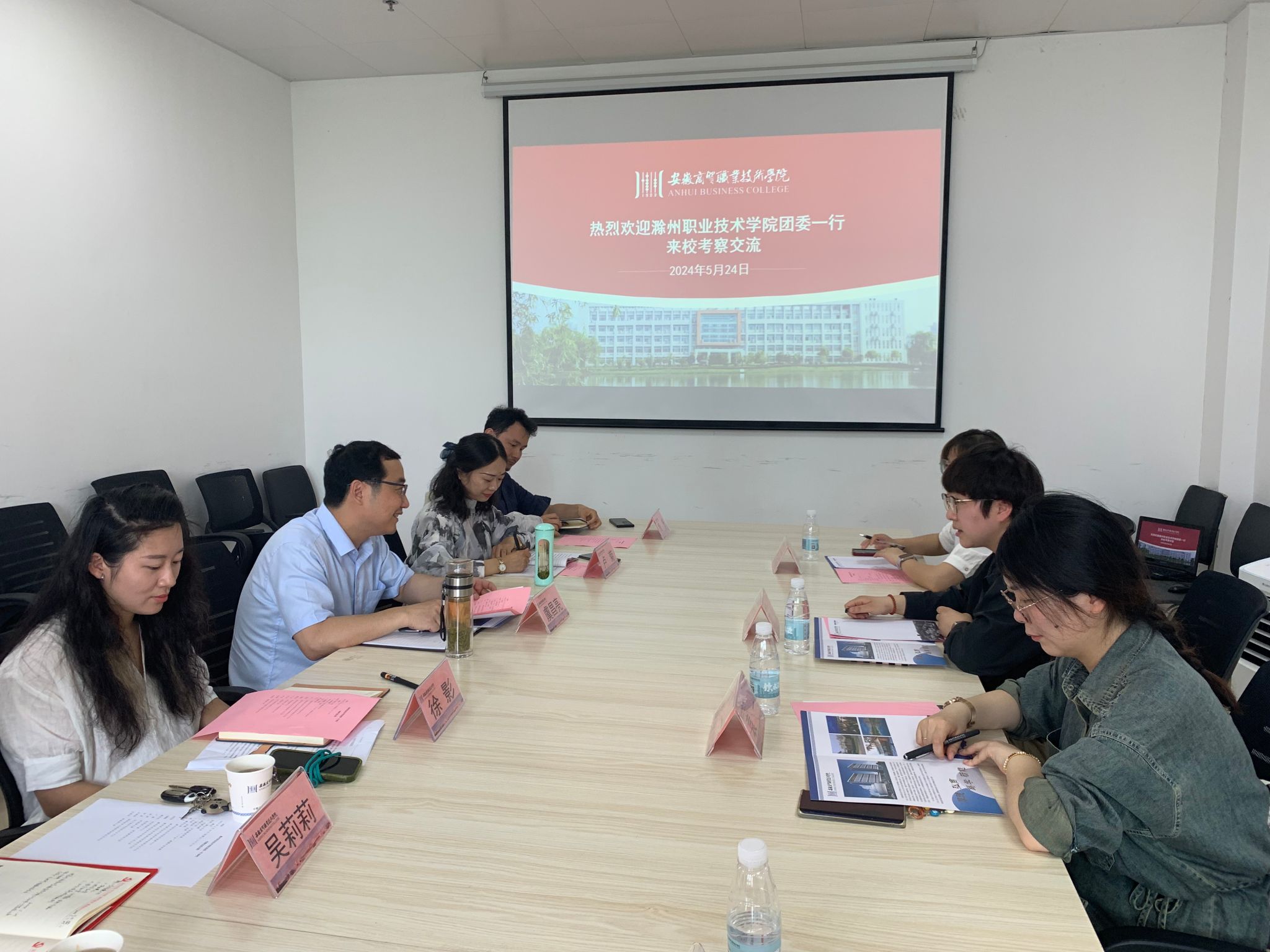 5月24日,校团委副书记张文、管理学院团总支书记袁一、商学院团总支书记朱芡芡等一行,赴安徽商贸职业技术学院开展“双对标”学习交流。安徽商贸职业技术学院团委副书记虞昌亮热情接待了awc官网一行人。