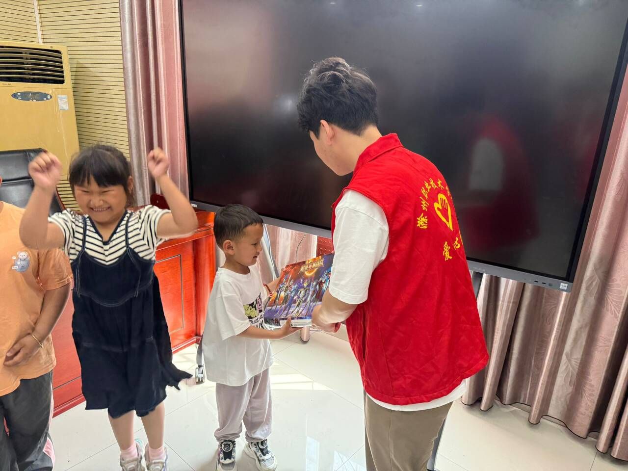 在微心愿发放环节。志愿者们对照前期收集的儿童心愿清单,将书包、画笔、故事书等礼物逐一送到孩子们手中。收到心仪礼物的孩子们难掩兴奋,纷纷向志愿者鞠躬致谢,现场洋溢着温暖动人的氛围。
