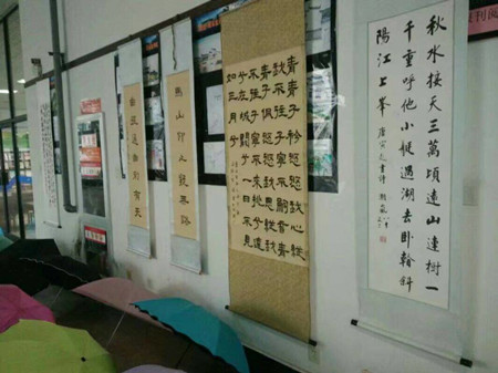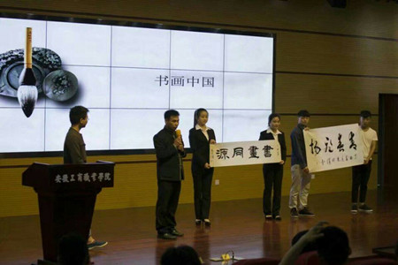 awc777万象城娱乐官网书法协会参展安徽工商职业学院“书画中国”书画展,继第二届安徽高校书画巡回展首展和淮北职业技术学院展出之后,我院作品又联同安徽工商职业学院书法作品悬挂在了安工商报告厅悬挂供书画爱好者观赏。这次活动在我院书法社团和安工商书法社团人员的共同努力下,又一例成功的代表。